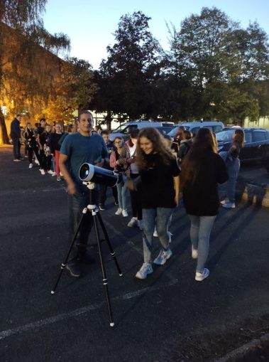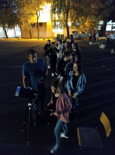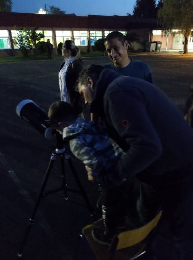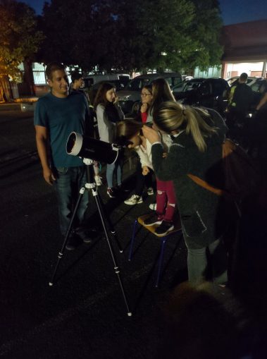 Učenici naše škole i Osnovne škole Dragutina Tadijanovića u ponedjeljak 4.10. imali su priliku u školskom dvorištu, u večernjim satima, uz vodstvo nastavnika Marina Čakarića promatrati teleskopom planete Sunčeva sustava, Jupiter i Saturn. Učenici nisu krili oduševljenje viđenim, stoga su dobili obećanje da će opet dobiti priliku promatrati nebo teleskopom.