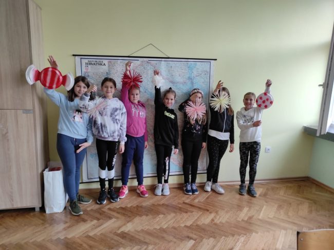 Učenici 4.b i 4.c razreda s učiteljicom Vlatkom Pavlović Kraljević izrađivali su božićne ukrase od različitih svakodnevnih predmeta. Zabavljajući se, naučili su kako mogu reciklirati, a svojim će ukrasima 1. prosinca u 12 sati i 19 minuta okititi božićno drvce postavljeno u Centru novog života u Petrinji.