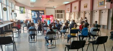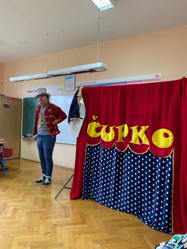 Danas je naše učenike od 1. do 4. razreda u OŠ Dragutina Tadijanovića i u PO Hrastovica posjetio klaun Čupko, odnosno glumac Zdravko Valentin koji dolazi iz kazališta “Dječja čarobna scena”. U zabavno-poučnoj predstavi “Što ću biti kad odrastem” Čupko je kroz igru, pjesmu i smijeh prikazao nekoliko zanimanja. Učenici su spremno odgovarali na sva pitanja i pomagali mu u izvedbi trikova, a Čupko ih je na kraju nagradio CD-om sa svojim pjesmama.