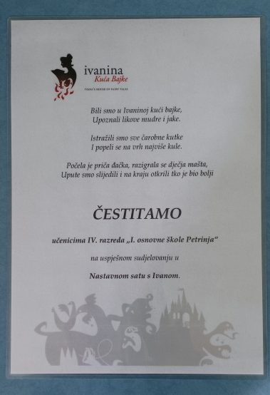 Učenici su posjetili Ivaninu kuću bajke te sudjelovali na Nastavnom satu s Ivanom koji se sastojao od dva dijela. U prvome dijelu sata uz stručno vodstvo razgledavali su stalnu izložbu, a u drugome interpretirali bajku “Šuma Striborova”. Natjecateljski duh pokazali su u kratkoj predstavi, koju su sami osmislili, te pomoću lutaka, pantomimom i zvukom uprizorili spomenutu bajku i pritom se dobro zabavili. Najzanimljiviji i najuzbudljiviji dio Ivanine kuće bilo je čarobno zrcalo. U razgovoru s Bjesomarom učenici su saznali kako bi izgledali da su lik iz bajke te koju bi moć imali.
