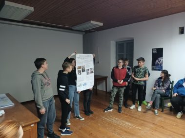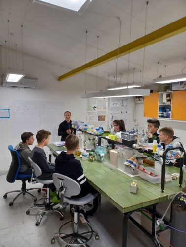 Po dolasku u Višnjan i nakon smještaja u dormitorij centra, učenicama je Korado Korlević, učitelj, astronom i popularizator znanosti, održao predavanje na temu Mala tijela solarnog sustava. Na tom su predavanju učenici saznali koje opasnosti svemir nosi sa svojim asteroidima, meteorima i kometima te što sve čovječanstvo čini kako bismo se od toga zaštitili. Ova je terenska nastava zamišljena kao istraživačka nastava, stoga su učenici nakon predavanja podijeljeni u pet grupa u kojima su trebali istražiti, objasniti i prezentirati pet zadanih tema: kemija koja kasni, može li se po Suncu ploviti, koji je čaj zdraviji, poker face i kukci oko nas. Tijekom drugoga dana marljivo su prikupljali podatke, mjerili, istraživali, skupljali i proučavali kukce kako bi uspješno izvršili projektni zadatak i ostalim grupama prezentirali svoja otkrića i zaključke.