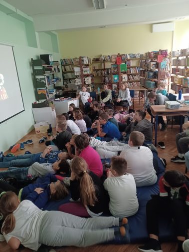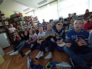 Naravno da dan posvećen animiranim filmovima ne može proći bez gledanja crtića pa je knjižničarka za učenike 3. – 5. razreda knjižnicu na tri dana pretvorila u pravu malu kinodvoranu. Od srijede do petka za učenike su projicirani animirani filmovi Preko ograde i Tko je smjestio Crvenkapici. Da bi doživljaj bio potpun, uz crtiće su se jele i kokice.