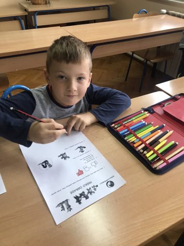 Prvašići su sa svojim učiteljicama Lidijom Čakarić i Vlatkom Pavlović-Kraljević uz Svjetski dan animiranog filma obilježili i Međunarodni dan međusobnog pomaganja (26. listopada). Gledali su animirani film Preko ograde, rješavali listić, izrađivali matematičke puzzle s animiranim likovima i slikali stabla.