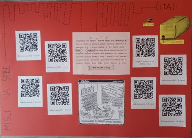 S obzirom na navike mladih, a i u skladu s ovogodišnjom temom, knjižničarka je učenicima odlučila ponuditi aktivnosti u kojima će mobitele iskoristiti za čitanje književnih preporuka ili ulomaka iz knjiga. Na plakatu u knjižnici učenici su, skenirajući QR kod, mogli pročitati koje im naslove knjižničarka preporučuje za čitanje u slobodno vrijeme. Osim toga, učenici 5. razreda sudjelovali su u igri potrage, tzv. escape roomu koja je osmišljena prema romanu Ivana Kušana Koko u Parizu. Rješavajući niz logički povezanih zagonetki, šifriranih poruka i pitalica, radeći u skupinama i slijedeći tragove, pokušali odgonetnuti tko je ukrao Mona Lizu i oteo Koka.