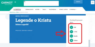 Na portal se prijavljujete svojim AAI@EduHr elektroničkim identitetom na poveznici https://lektire.skole.hr/prijava-na-elektire/. Nakon prijave u izborniku “Djela” odaberete “Popis djela za osnovnu školu”. Na popisu pronađite djelo koje trebate, a zatim ga možete čitati na mreži ili u obliku PDF-a preuzeti na svoje računalo.
