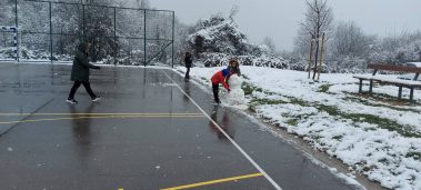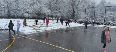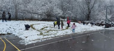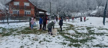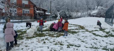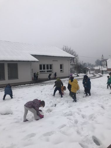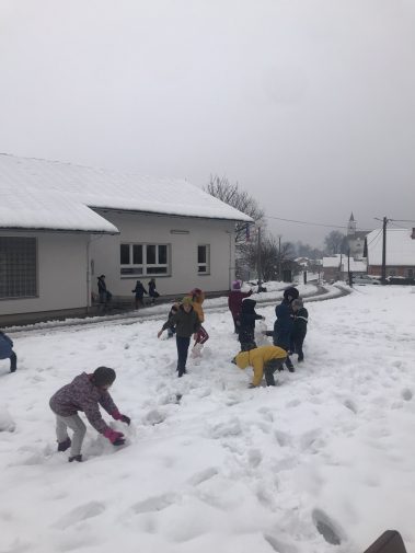 Učenici prvih i drugih razreda te kombiniranog razrednog odjela u Hrastovici jako su se razveselili omiljenoj zimskoj padalini. Naše dvorište konačno je zabijelio snijeg pa su učenici veliki odmor proveli uživajući u zimskim radostima. Marljivo su skupljali snijeg u velike grude koje su postale snjegovići, a nakon toga su vježbali gađanje grudajući se mekim snijegom. Hladnoća i snijeg koji pada nisu im nimalo smetali, uživali su, naigrali se pa su rumeni i sretni mogli nastaviti s radom.