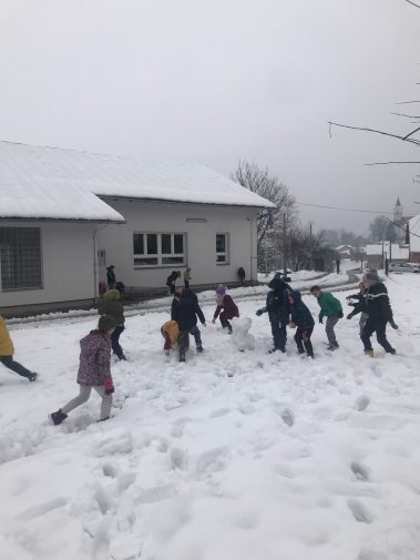 Danas nam pada kiša i polako otapa snijeg, ali u petak su naši učenici u područnoj školi u Hrastovici uživali u snijegu.