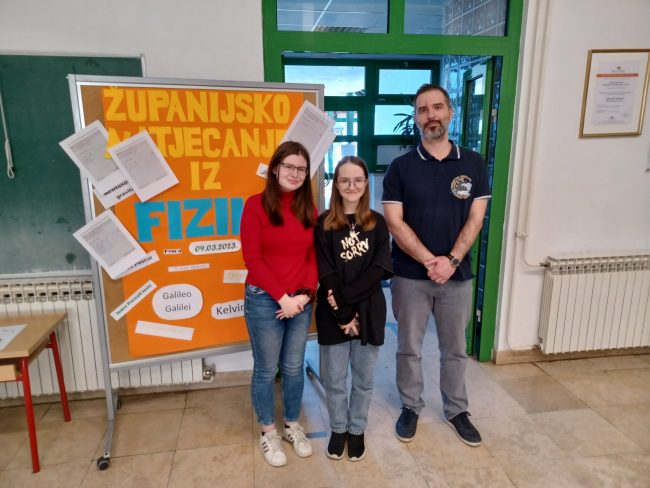 Dana 9. ožujka 2023. godine naše su dvije učenice 8. razreda u pratnji mentora Danijela Pranića sudjelovale na županijskom natjecanju iz fizike. Na županijsko natjecanje plasirale su se nakon odličnih rezultata na školskoj razini. Čestitamo Lani Đureković, Tei Vadlji i njihovom mentoru.