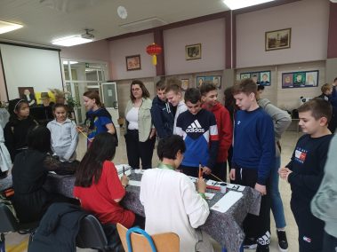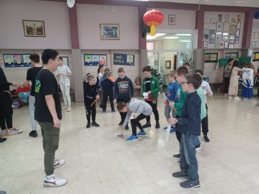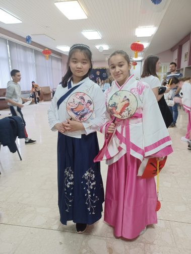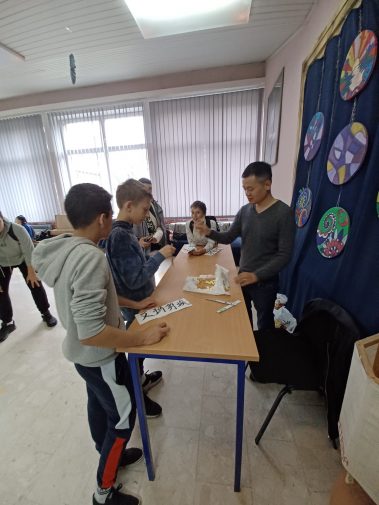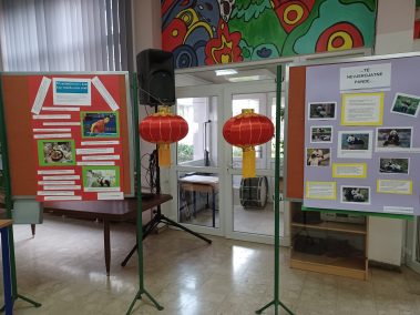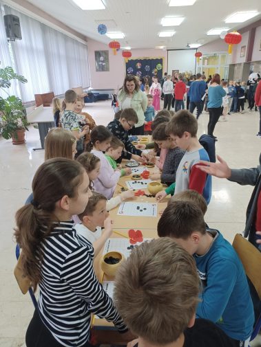 Povodom obilježavanja Međunarodnog dana kineskog jezika prošloga tjedna posjetili su nas djelatnici i profesori Konfucijevog instituta Sveučilišta u Zagrebu koji su naše učenike i djelatnike upoznali s kineskom kulturom. Za nas su pripremili niz radionica na kojima su učenici mogli naučiti kako pravilno držati kineske štapiće i jesti s njima, vidjeli su kako izgleda tradicionalna priprema kineskog čaja koji su mogli i kušati, dobili su svoje ime napisano kaligrafijom, a okušali su se i u tzv. “paper cutu” – izrezivanju različitih oblika i životinja od papira. Mogli su pomoću VR naočala letjeti nad Šangajem, a najviše ih je zainteresirala kineska igra “go” koju u Kini zovu “weiqi”. Osim toga bili su oduševljeni tradicionalnom kineskom odjećom koju su mogli i isprobati.