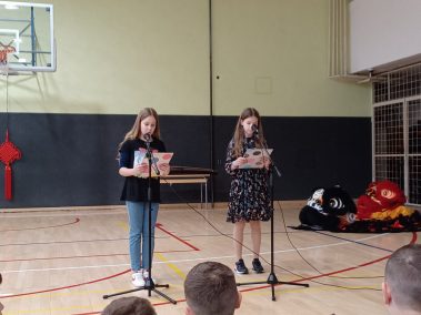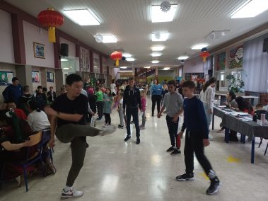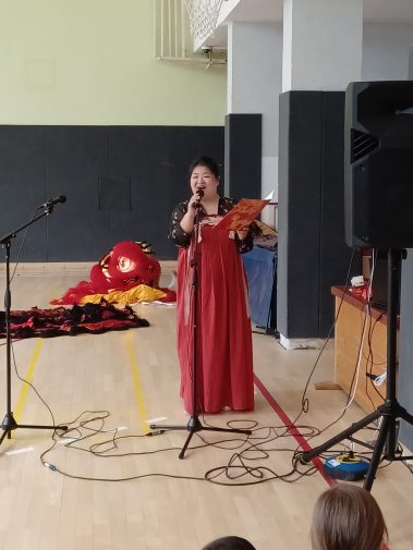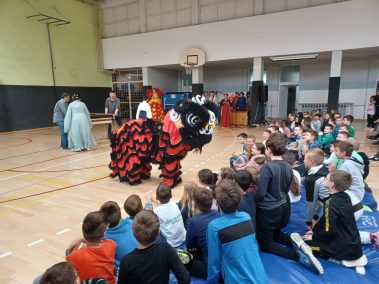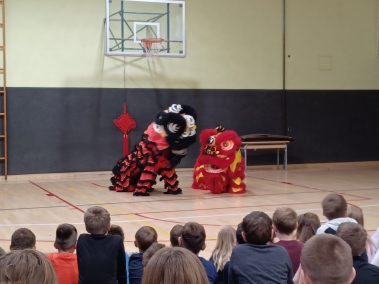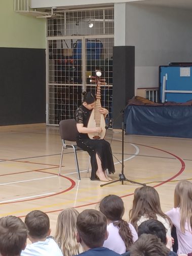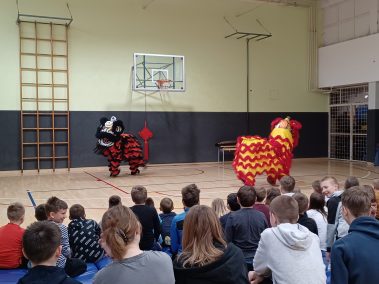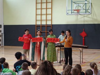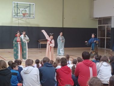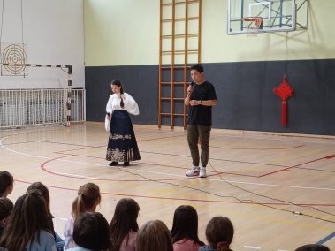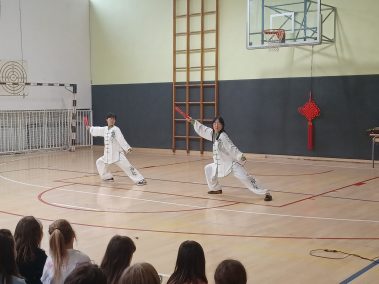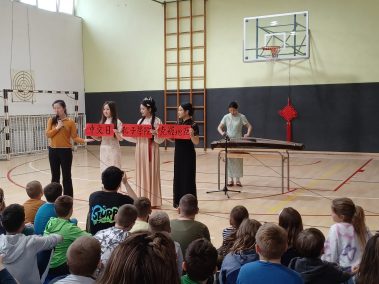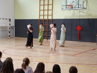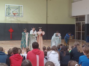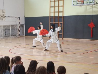 Gosti su za nas u školskoj dvorani pripremili predstavu u kojoj su predstavili kinesku kulturu i običaje. Pa smo tako mogli vidjeti kostim kineskog lava, tradicionalna glazbala poput “guzhenga” (kineska citra) i “pipe” (kineska lutnja). Predstavili su nam se pjesmom i plesom u tradicionalnoj kineskoj odjeći. Vidjeli smo i “tai chi” – kinesku metodu vježbanja, a za kraj svima su nam uputili lijepe želje, a učenicima što bolji uspjeh u školi.