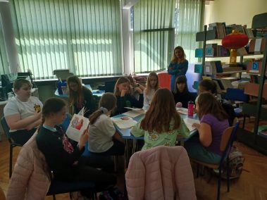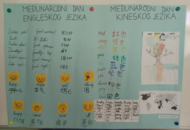 Tijekom travnja učenici 3. i 4. razreda skupine “Mali Englezi” imali su niz aktivnosti i radionica koje je organizirala učiteljica engleskog jezika Davorka Sokač u suradnji s knjižničarkom Andrejom Brkljačić Škrljac. Aktivnosti su organizirane povodom Međunarodnog dana engleskog jezika koji obilježavamo 23. travnja. Toga dana obilježava se i Svjetski dan knjige pa su učenici različitim tehnikama crtali naslovnice bajki. Osim toga izrađivali su i plakat na kojem su prikazali osnovne izraze i pojmove na engleskom jeziku. Budući da se nekoliko dana prije toga obilježava i Međunarodni dan kineskog jezika (20. travnja), naša je učenica Mengxiao plakat upotpunila prijevodom pojmova na kineski jezik.