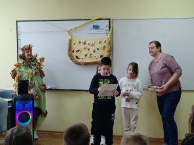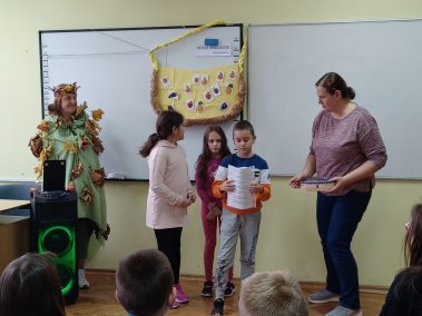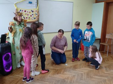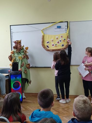 Učenike 3. razreda posjetila je jesen i s njima ponovila što su sve naučili o jeseni, kad dolazi i koje nam plodove donosi. Poslušali su zanimljivu priču o jesenskim plodovima, pjevali i plesali. Najzanimljiviji dio ovoga sata, u kojem su učenici pokazali svoj natjecateljski i navijački duh, bila je igra u timovima – slaganje naslova od ispremiješanih slova i memory igra.