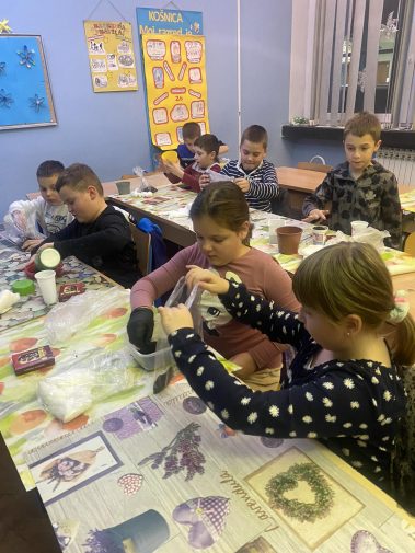 Naši su učenici i učitelji i ove godine bili vrijedni pa su izradili puno božićnih ukrasa i čestitki, sijali su pšenicu i uživali u božićnom ugođaju. Osim toga, Mali Englezi i Mladi knjižničari gledali su božićne crtiće i filmove.