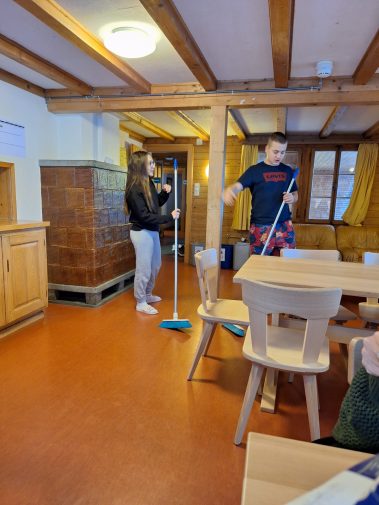 U sklopu projekta Interkulturalna razmjena mladih u Švicarsku je putovalo 8 učenika naše škole u pratnji učitelja Marina Čakarića koji su u dječjem selu Pestalozzi boravili od 5.12.2023. do 19.12.2023. godine. Bili su smješteni u drvenim kućama u kojima je boravilo više učenika iz različitih škola. Učenici naše škole bili su smješteni u sobe s učenicima iz OŠ Glina i OŠ Jabukovac s kojima su dijelili kućanske poslove. Svakoga dana čistili su podove, prali suđe, donosili hranu za obroke, postavljali stol za jelo, iznosili smeće, čistili kupaonicu prema unaprijed dogovorenom rasporedu.