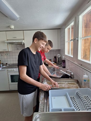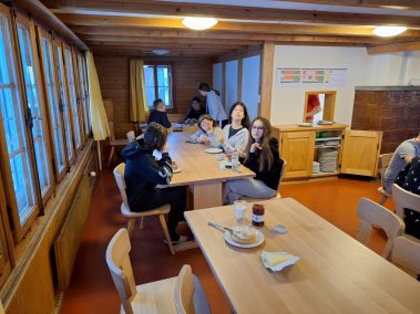 Drugi tjedan njihova boravka u Švicarskoj pridružili su im se i vršnjaci iz Njemačke s kojima su se uglavnom sporazumijevali na engleskom jeziku. Pripremali su i kuhali jedni za druge hranu pa su se tako naši učenici okušali u pripremi vegetarijanskog slijeda od 3 jela koji su sami osmislili. Pripremili su juhu od šparoga, batat i bruskete, a za desert puding kremu.