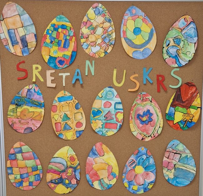Učenici razredne nastave sa svojim su učiteljicama izrađivali uskrsne čestitke, ukrašavali pisanice i svoje razredne panoe.
