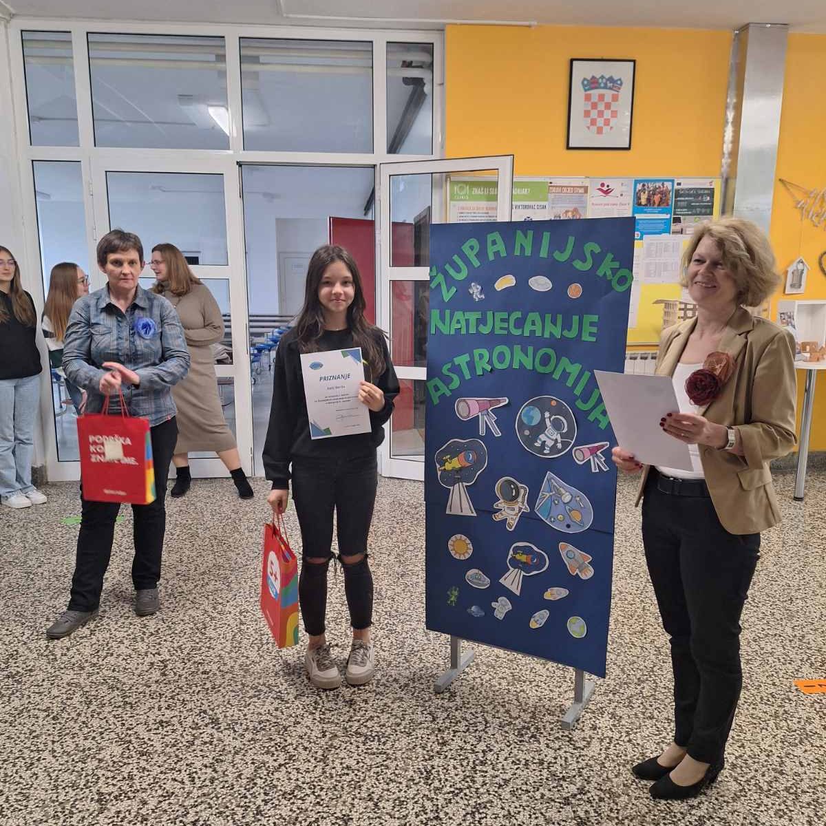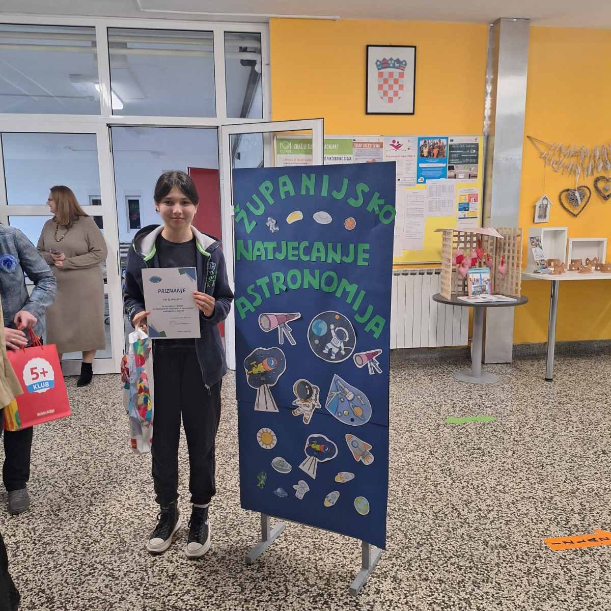 Dana 7. ožujka 2024. naši su učenici sudjelovali na županijskom natjecanju iz astronomije koje se održalo u Osnovnoj školi Viktorovac. Pod vodstvom mentora Marina Čakarića našu školu predstavljalo je petero učenika šestog razreda.