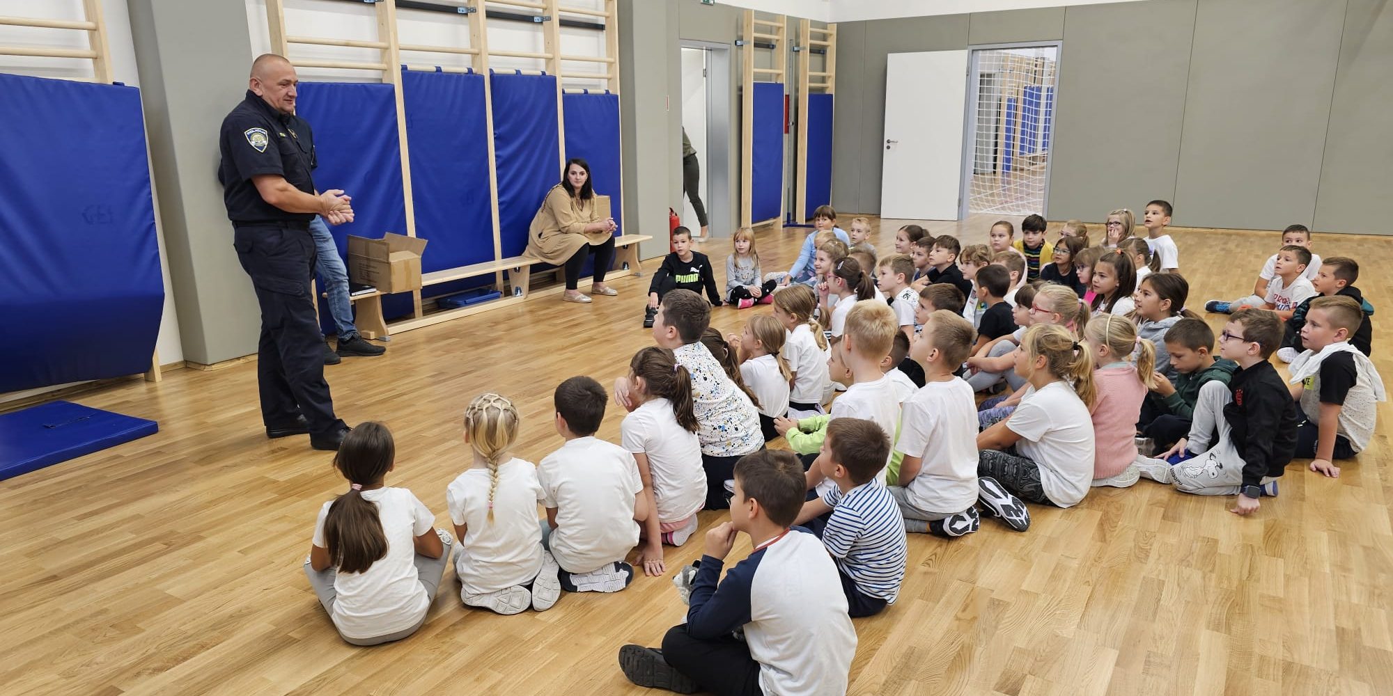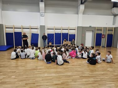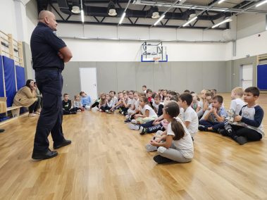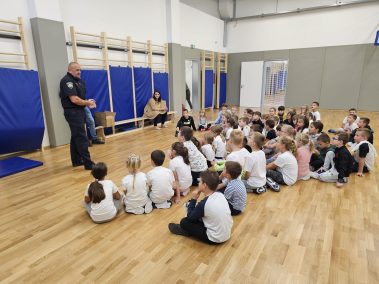 Miroslav Vuković djelatnik za prometnu preventivu Policijske postaje Petrinja održao je danas u našoj školi predavanje za učenike prvih razreda. Učenici su mogli čuti savjete kako biti siguran u prometu odnosno pravila za sigurno sudjelovanje u prometu. Na kraju su učenici kao poklon dobili reflektirajuće okovratnike, a od predstavnika Autokluba Sisak Predraga Ivanovića slikovnice.