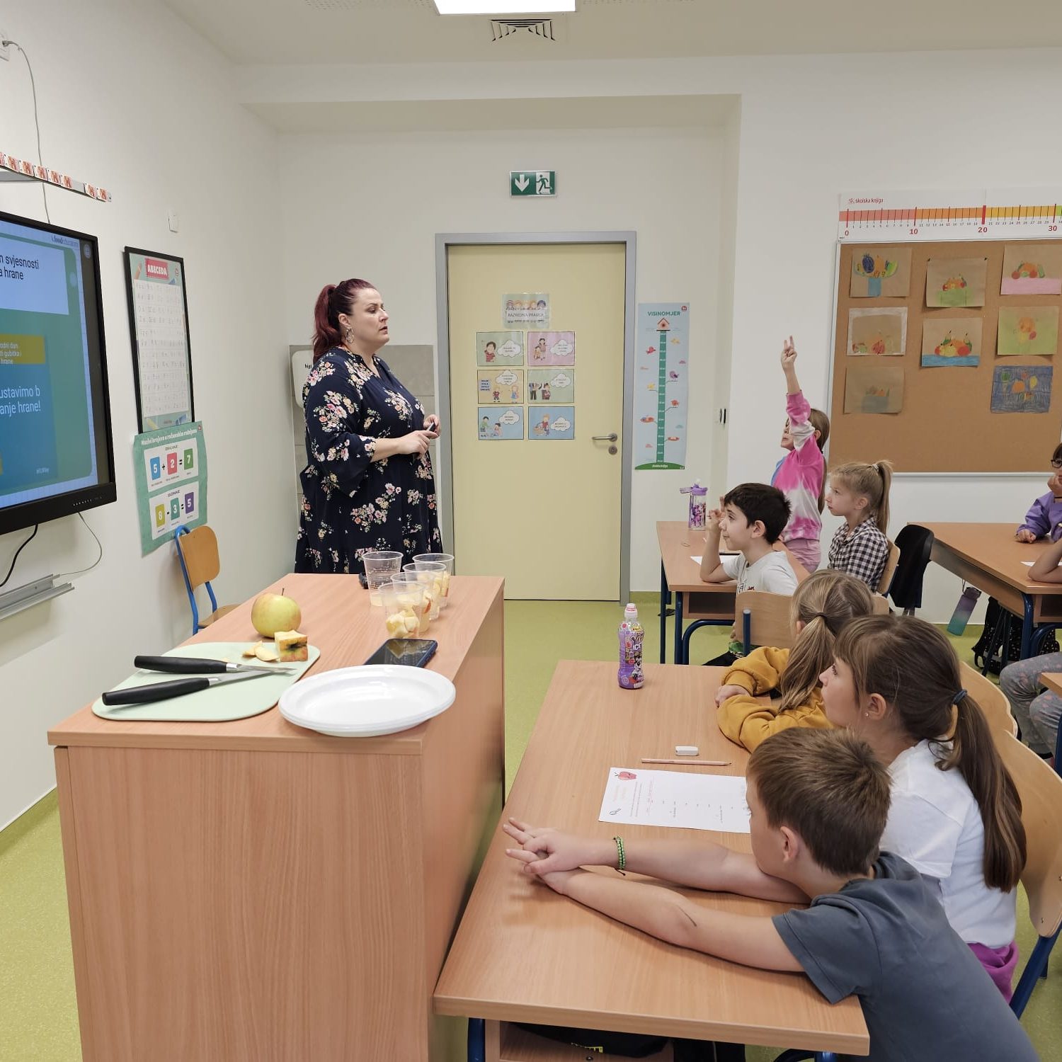 Učenici su imali priliku čuti koja je razlika između gubitka hrane i otpada hrane te su osvijestili kako je bacanje hrane velik problem u cijelome svijetu. Učenici su u skupinama proveli pokus s jabukama u kojem su imali priliku vidjeti što se dogodi s jabukom kada je izložena različitim uvjetima. Na temelju pokusa, učenici su samostalno utvrdili kako najbolje sačuvati jabuke. Na kraju su svoje znanje o gubitku i sigurnosti hrane provjerili kvizom.