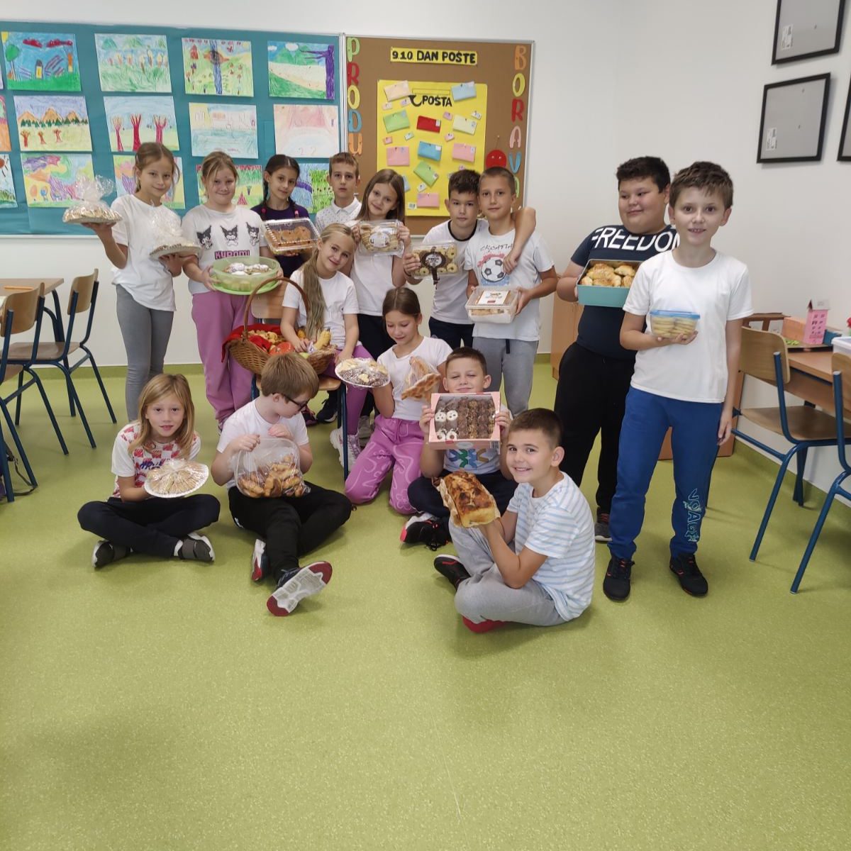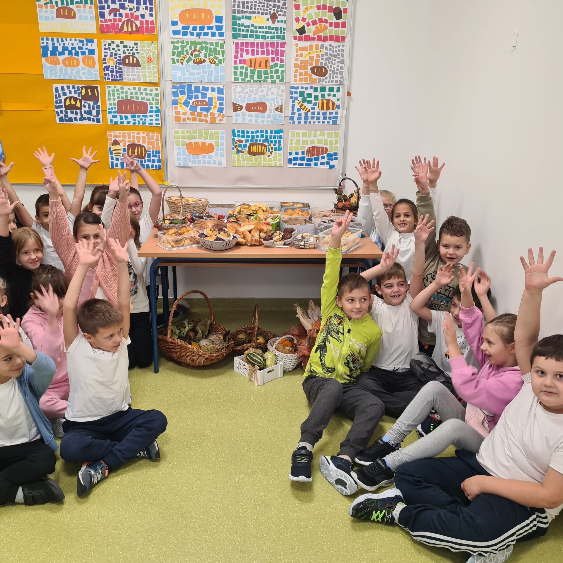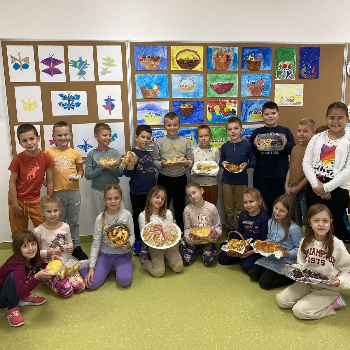 Dana 16.10. 2024. učenici razredne nastave naše škole obilježili su Dane kruha i zahvalnosti za plodove zemlje. Temu kruha integrirali su kroz različita područja. Kroz razne aktivnosti učenici su imali priliku učiti o važnosti hrane, rada i dijeljenja. Poseban naglasak stavljen je na tradiciju pečenja kruha i njegovu simboliku u svakodnevnom životu. U školu su donijeli slana i slatka peciva, kruhove, gibanice, kekse i suhe kolače. Nakon radnog dijela počastili su se proizvodima svojih mama, baka, teta, očeva. Svi su zajednički uživali u bogatstvu okusa domaćih pekarskih proizvoda, čiji su okusi zadovoljili i najzahtjevnije nepce. Cijeli događaj obilježen je veselim raspoloženjem, a učenici su, osim u pripremljenim delicijama, uživali i u druženju s prijateljima i učiteljicama.