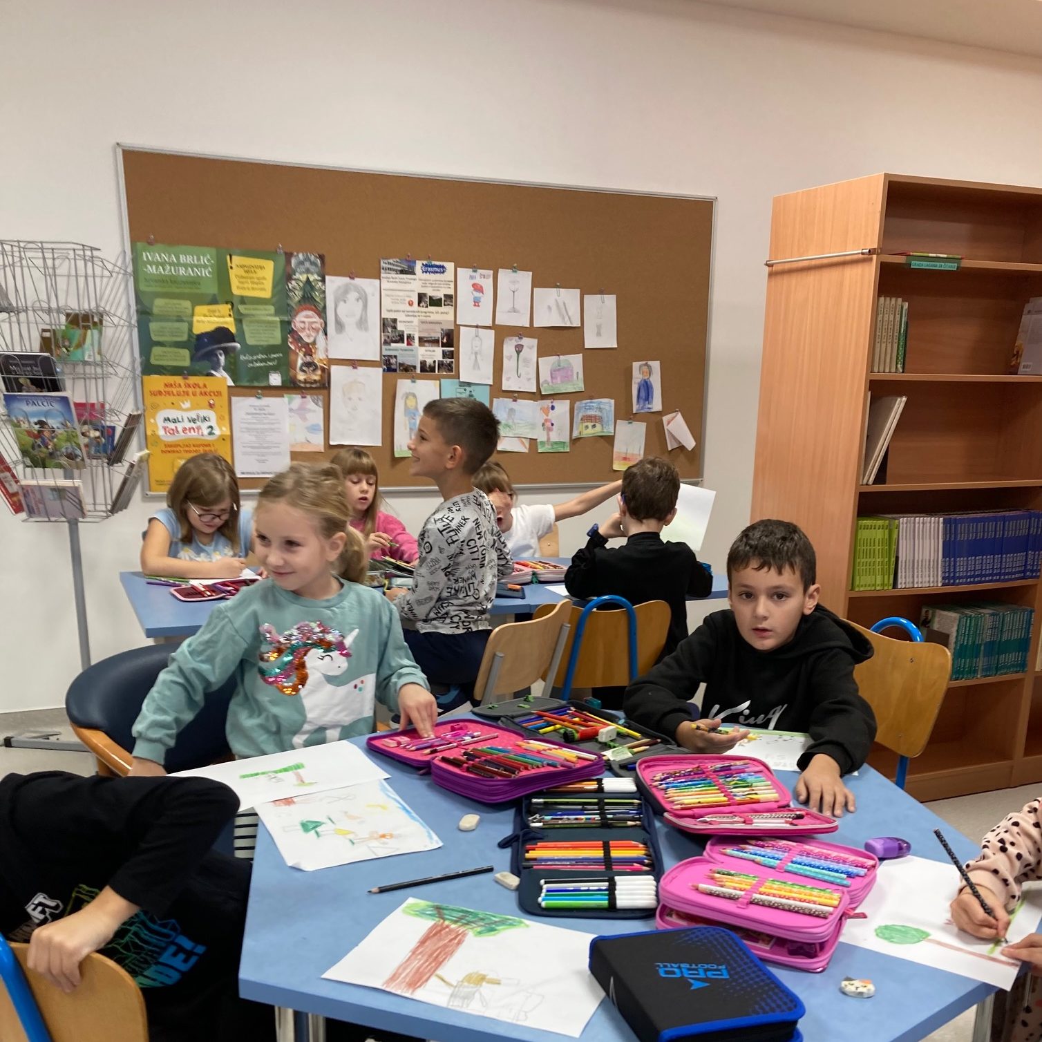 Nakon slušanja priče, učenici su crtali likove iz priče, pokazujući svoju maštovitost. Posudili su i svoje prve lektire te se vratili puni dojmova, jedva čekajući ponovni posjet knjižnici.