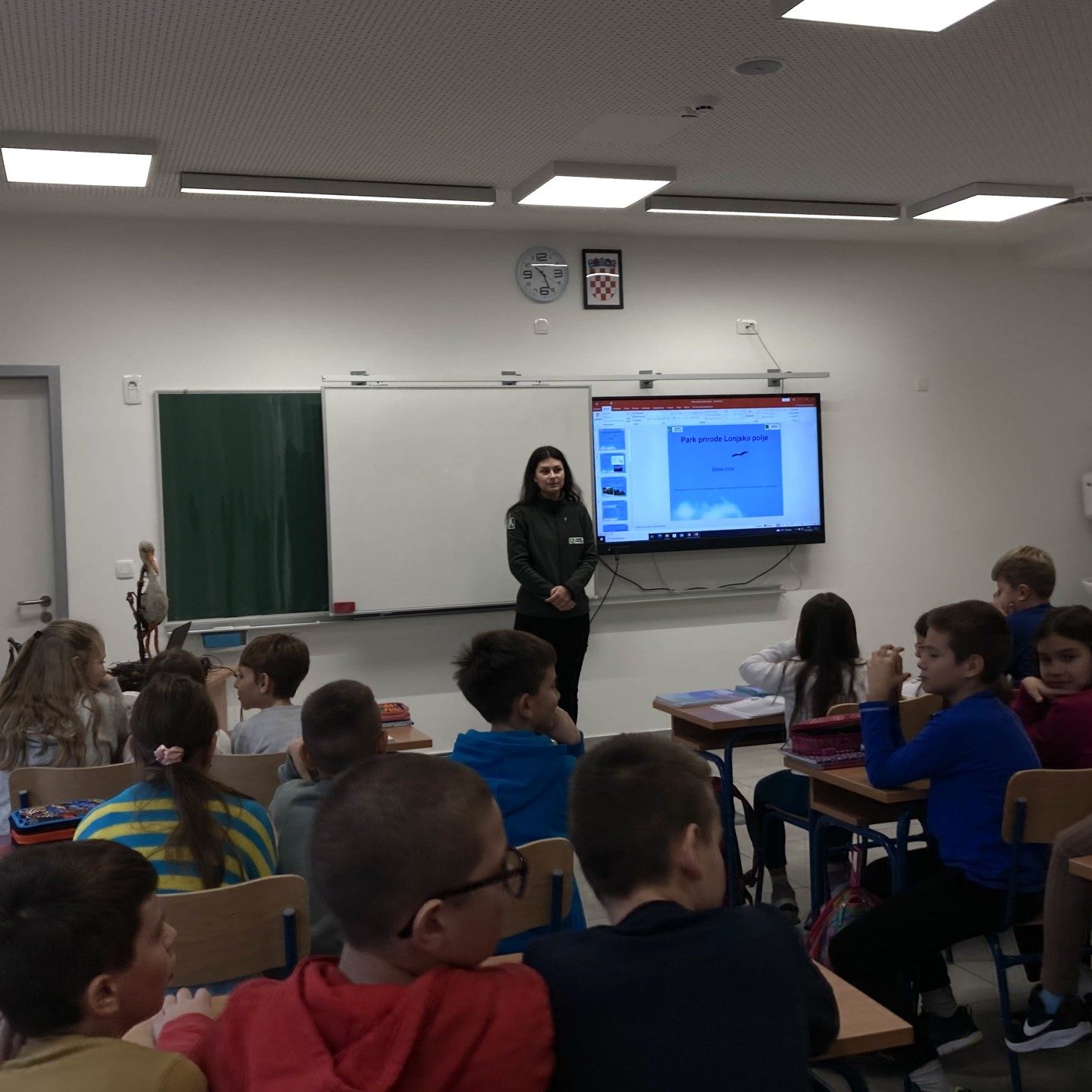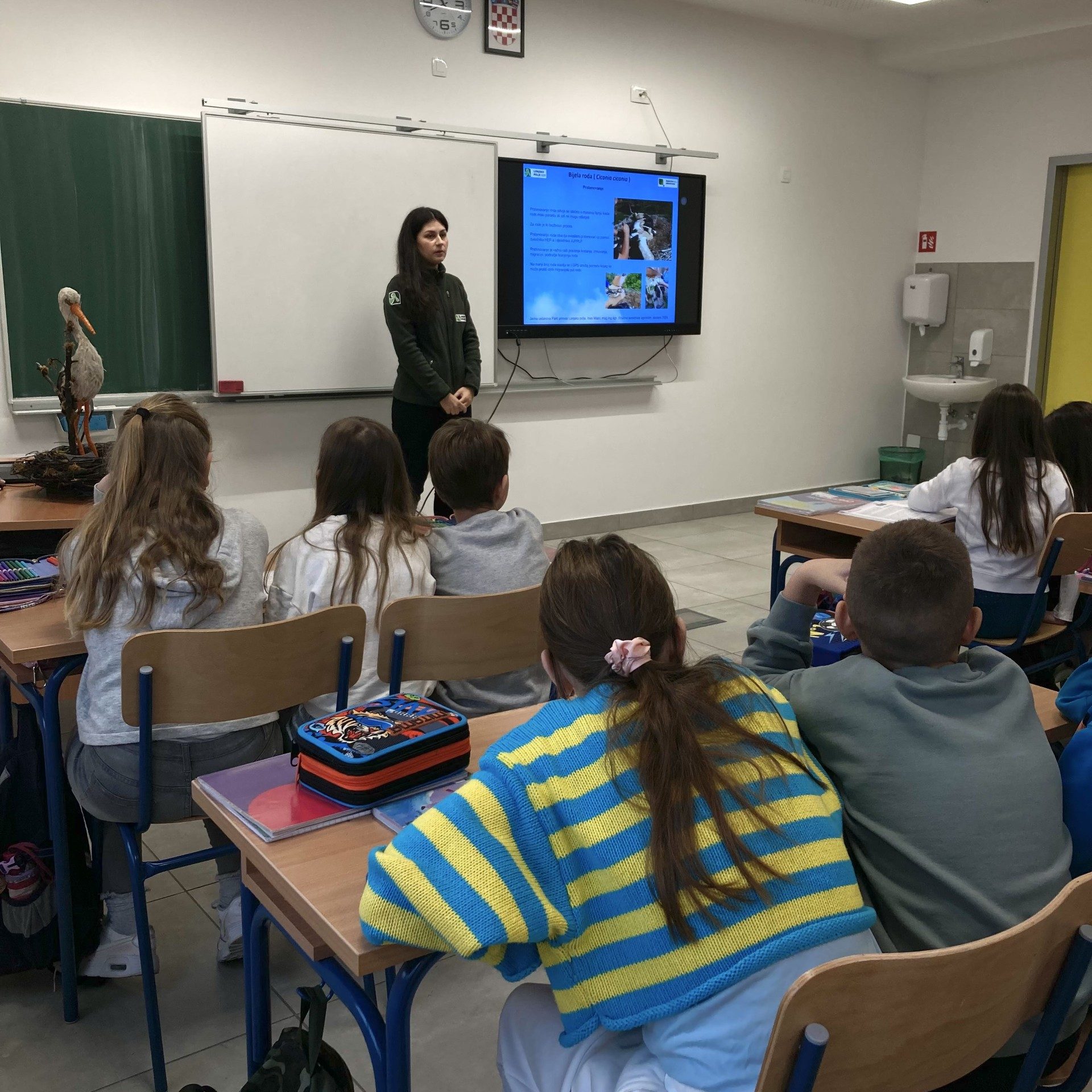 U našoj školi, učenici četvrtih razreda 19. studenog imali su priliku sudjelovati na zanimljivom i edukativnom predavanju pod nazivom Bijela roda, koje je održala Ines Miani, djelatnica Parka prirode Lonjsko polje.