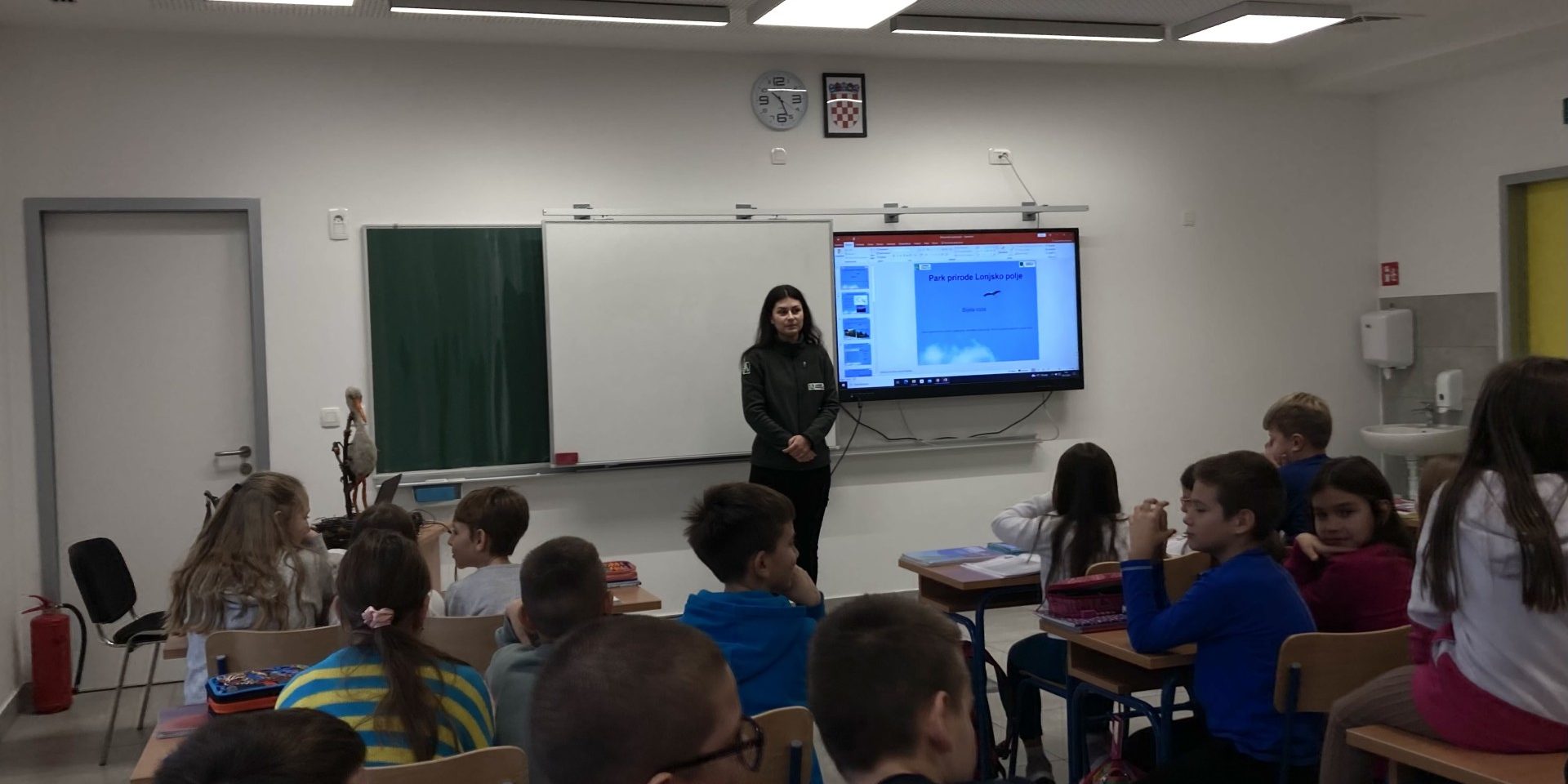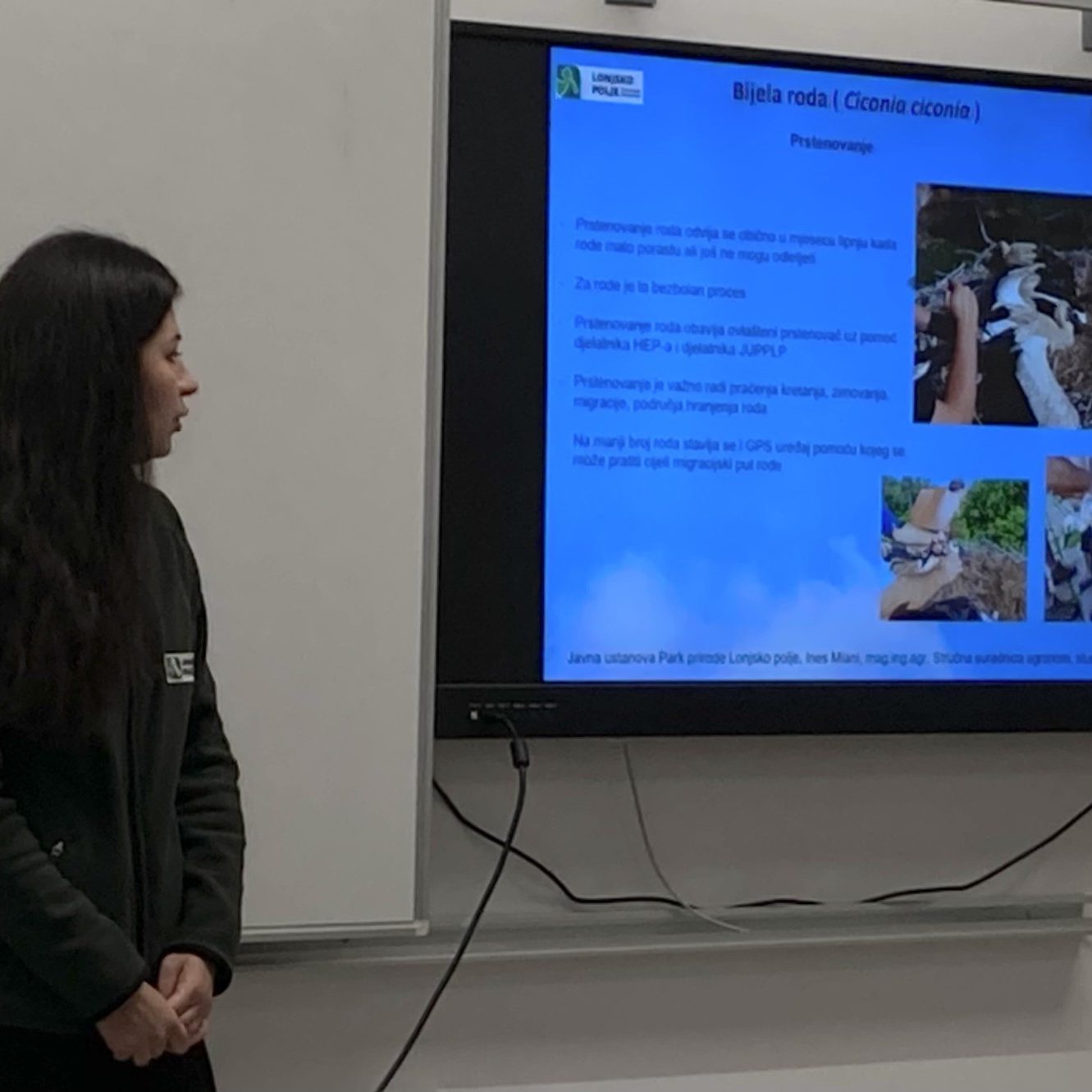 Kroz interaktivno izlaganje, učenici su otkrili mnoge zanimljivosti o bijeloj rodi, jednoj od najpoznatijih ptica selica našeg kraja. Saznali su detalje o njezinom životnom ciklusu, prehrani, selidbenim putovima te važnosti očuvanja prirodnih staništa. Posebno zanimljiva bila je priča o tradicionalnim selima Lonjskog polja, koja su poznata po svojim gnijezdima na krovovima kuća.