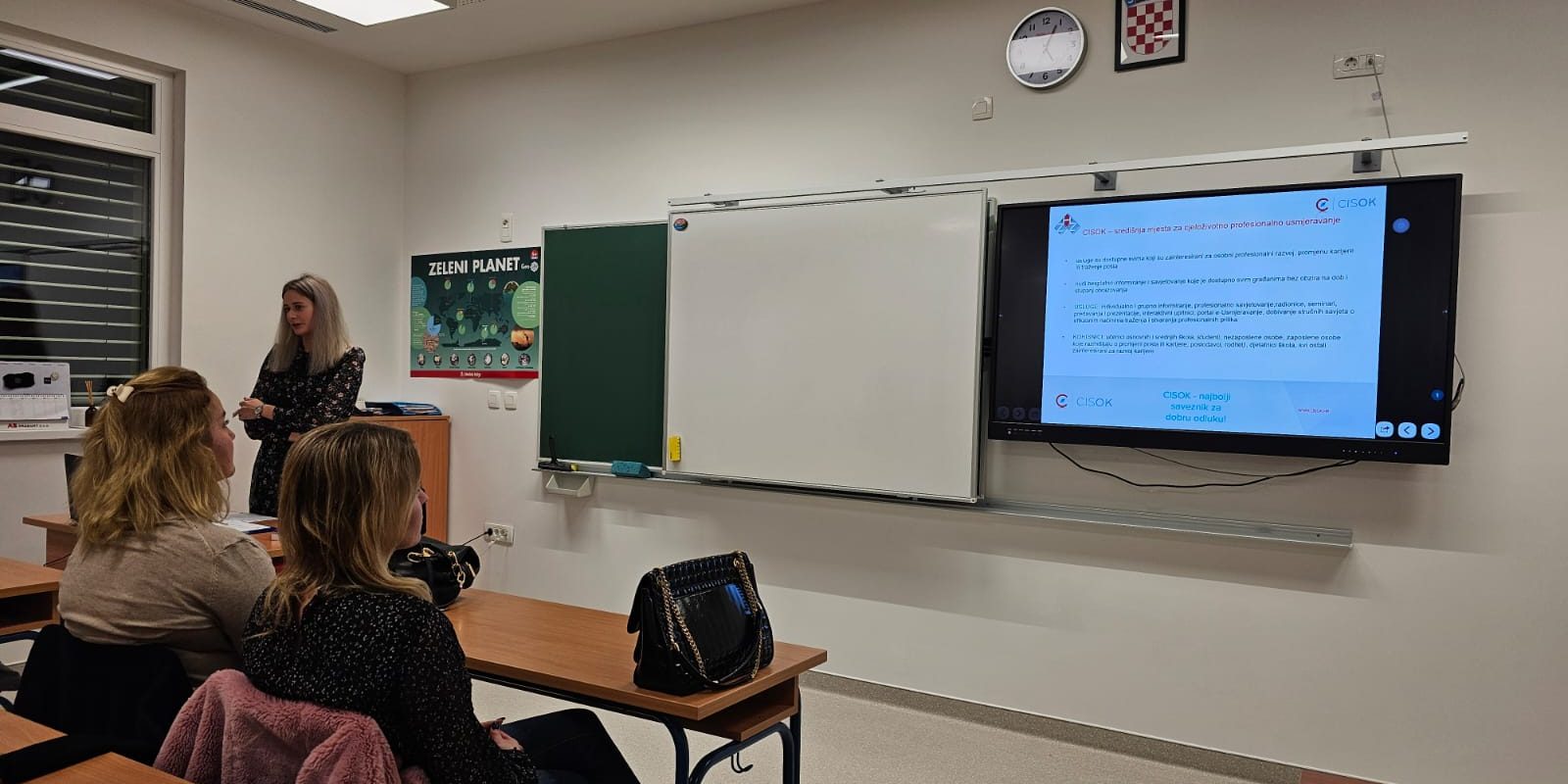 U četvrtak 29.11.2024. Monika Kapac Milek iz Centra za informiranje i savjetovanje o karijeri (CISOK) održala je predavanje na roditeljskom sastanku na temu Uloga roditelja u obrazovanju i profesionalnom usmjeravanju. Roditelji su mogli čuti koje subjektivne i objektivne činitelje njihova djeca i oni trebaju uzeti u obzir prilikom odabira svog budućeg zanimanja. Također, u brošuri Kamo nakon osnovne škole?, koja je dostupna na stranicama CISOK-a, mogu pronaći razne informacije o mogućnostima školovanja na području središnje Hrvatske. Uz to, stranica e-usmjeravanje Hrvatskog zavoda za zapošljavanje nudi razne interaktivne upitnike koji su osmišljeni kao pomoć za uspješnije upravljanje karijerom. Svi oni koji žele koristiti usluge CISOK-a mogu se javiti gospođi Moniki Kapac Milek na monika.kapac.milek@hzz.hr ili na 044/659-128.