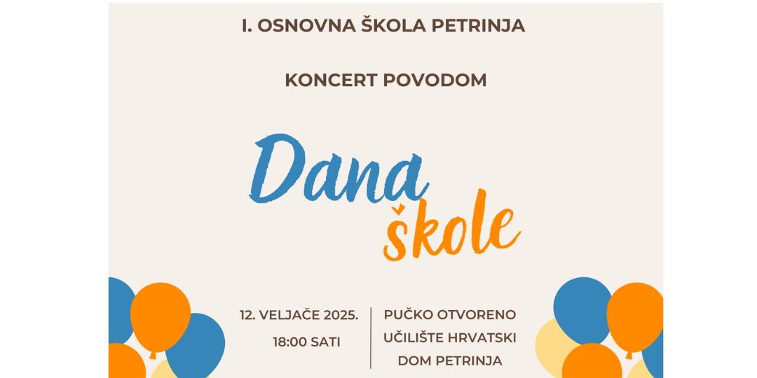 U Pučkom otvorenom učilištu Hrvatski dom Petrinja, u srijedu, 12. veljače, u 18 sati održat će se koncert povodom Dana naše škole.