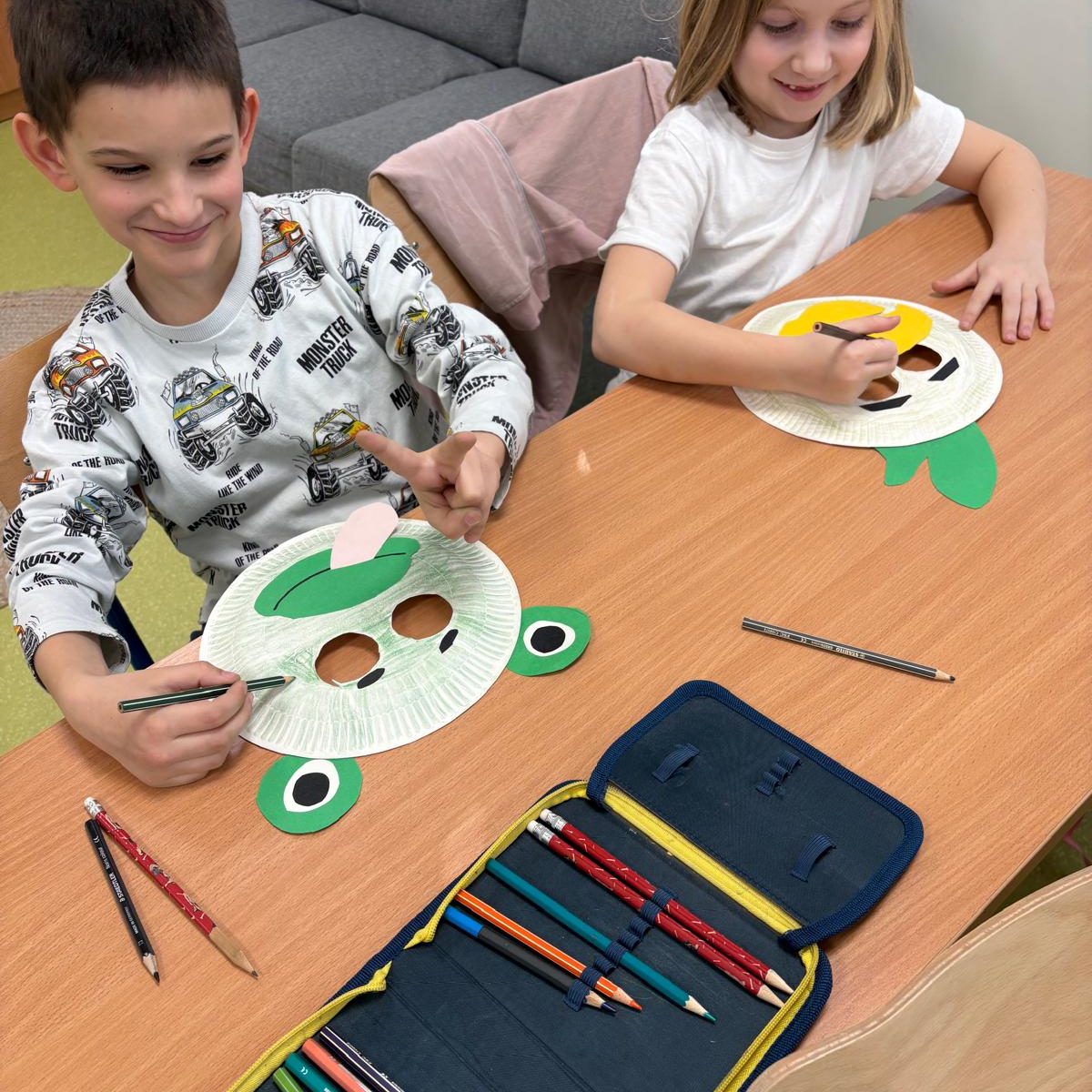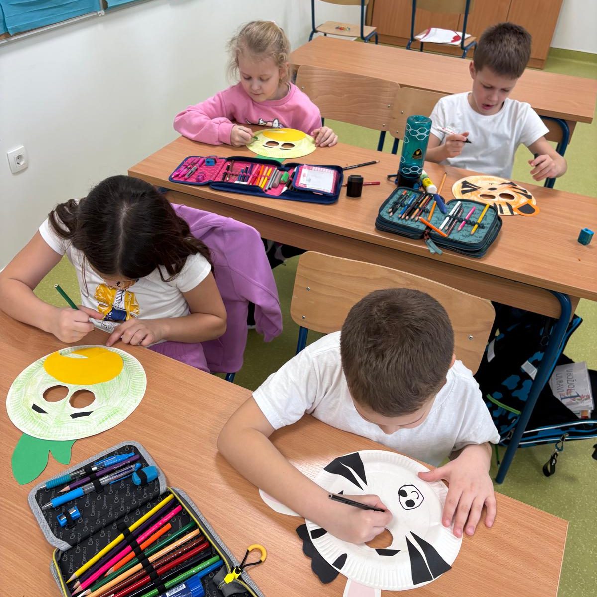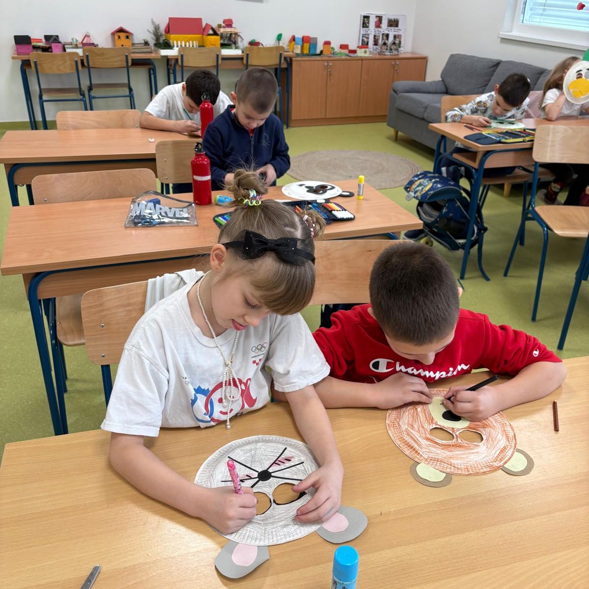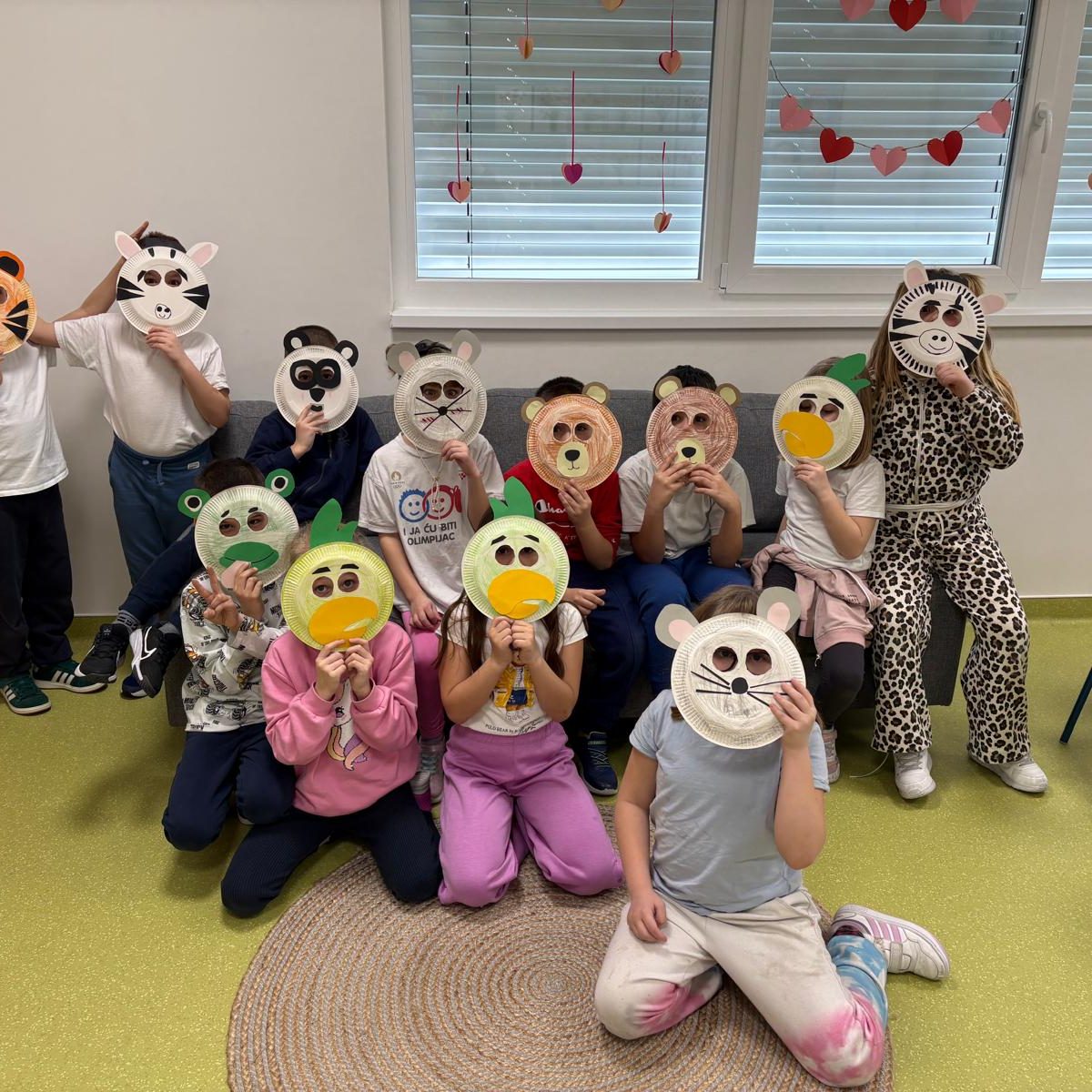 Učenici prvog razreda produženog boravka, zajedno s učiteljicom, izrađivali su maske za maškare. Tijekom izrade maski vladala je vesela i kreativna atmosfera ispunjena smijehom i zabavom.