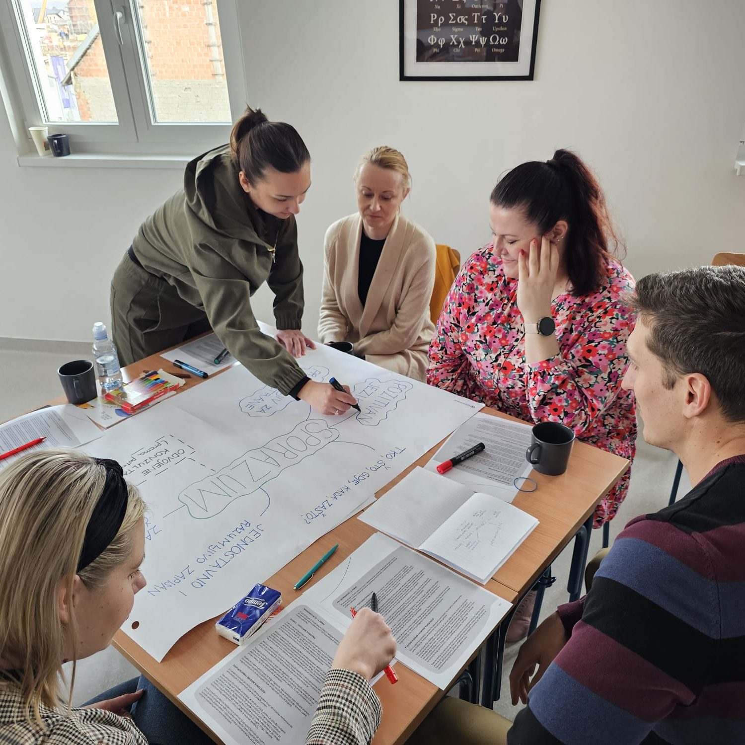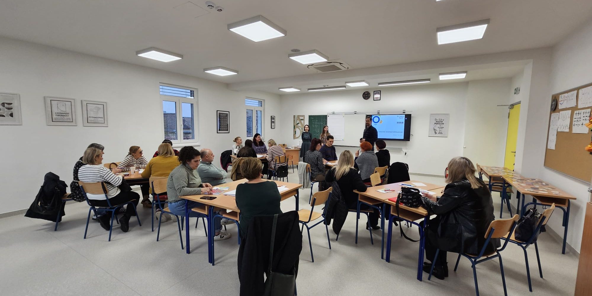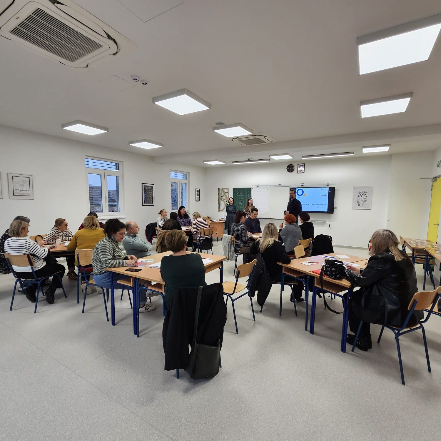 U sklopu projekta Zdrava komunikacija=zdrava glava koji su osmislile učiteljica geografije Marija Ros Kozarić i pedagoginja Anamaria Titijevski Vidović, a za čije su financiranje dobile sredstva Ministarstva znanosti, obrazovanja i mladih, u četvrtak 27.2. i u petak 28.2.2025. u našoj školi održan je Osnovni seminar medijacije. Edukaciji su prisustvovali učitelji naše škole i stručna suradnica socijalna pedagoginja, a vodile su ga trenerice Ana Šimić i Helena Šikić. Tijekom dva dana učili su o sukobu, što je sve bitno kako bi sukob razumjeli, o tome kako komunicirati u sukobu i sa sukobljenima te naposljetku korake u samom postupku medijacije što su imali prilike i vježbati. Vjerujemo da su sudjelovanjem u ovoj edukaciji učitelji imali prilike razvijati svoje komunikacijske i emocionalne vještine te će ta znanja moći prenositi na svoje učenike.