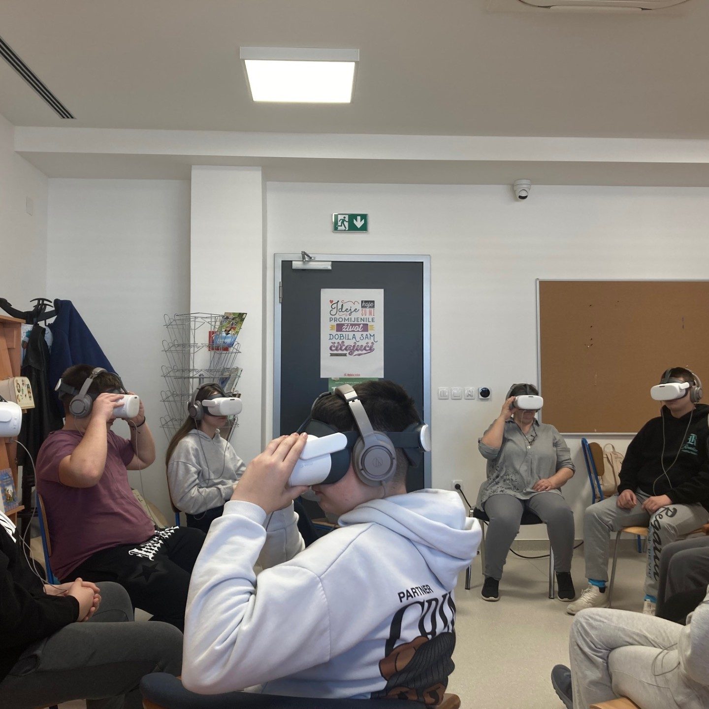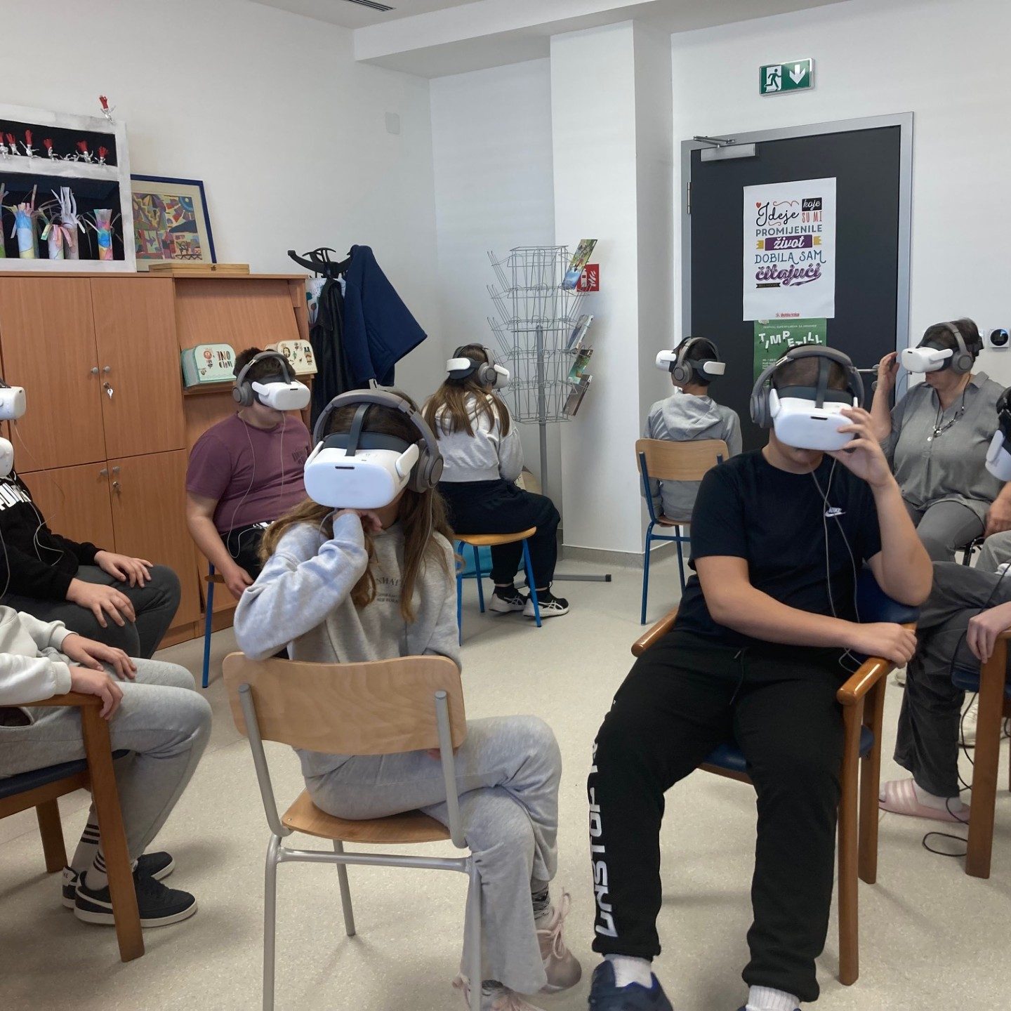Učenici od šestog do osmog razreda u školskoj knjižnici imali su priliku doživjeti jedinstveno VR iskustvo gledajući dokumentarni film “Lovci sakupljači”. Kroz virtualnu stvarnost, zakoračili su u svakodnevicu plemena Hadza iz Tanzanije – jednog od posljednjih plemena lovaca sakupljača na svijetu.
