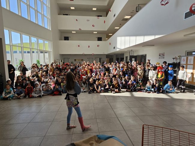 U utorak 5. ožujka 2025. našom aulom zavladale su maškare. Uvodni program pripremila je dramska skupina pod vodstvom učiteljice Lidije Čakarić, a izveli su igrokaz Acipaknevrc s kojim su se predstavili i na LiDraNu. Nakon toga uslijedila je zabava i ples. Uz zabavu i ples, učenici 1.b razreda imali su natjecanje “Tko će najbrže pojesti…