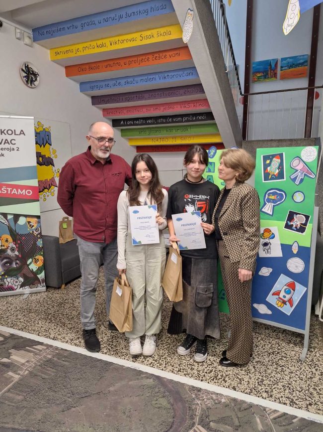 U srijedu 5.3.2025. u Osnovnoj školi Viktorovac održano je županijsko natjecanje iz astronomije. Pod vodstvom mentora Marina Čakarića našu školu predstavljale su učenice Katja Beriša i Lea Ljubojević (7.r). Katja i Lea osvojile su 2. mjesto. Čestitamo učenicama i mentoru na postignutom uspjehu!