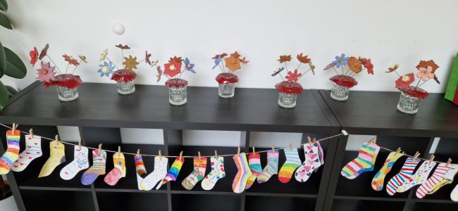 Učenici 2., 3. i 4. razreda na izvannastavnoj aktivnosti Mali keramičari prizvali su proljeće svojim radovima. Uz puno truda u njihovoj maloj radionici nastali su šareni proljetni cvjetovi, zvona, zečići i koke koji dočekuju Uskrs. Izložbu radova postavili smo u predvorju škole.