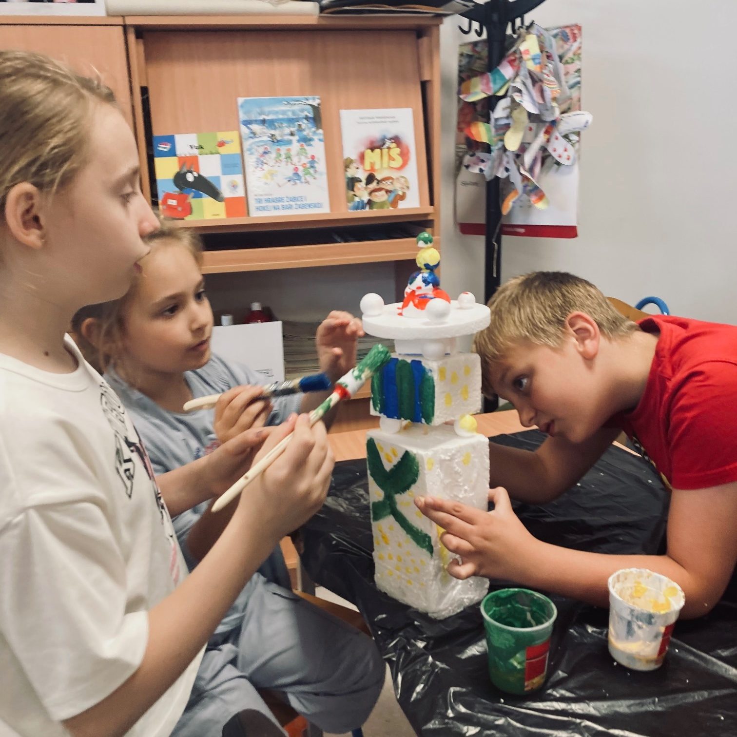 Učenici 2. razreda sudjelovali su u radionici na temu vertikalne gradnje. Od stiropora i boje nastale su visoke kuće, tornjevi i zgrade budućnosti — šarene, neobične i odvažne!