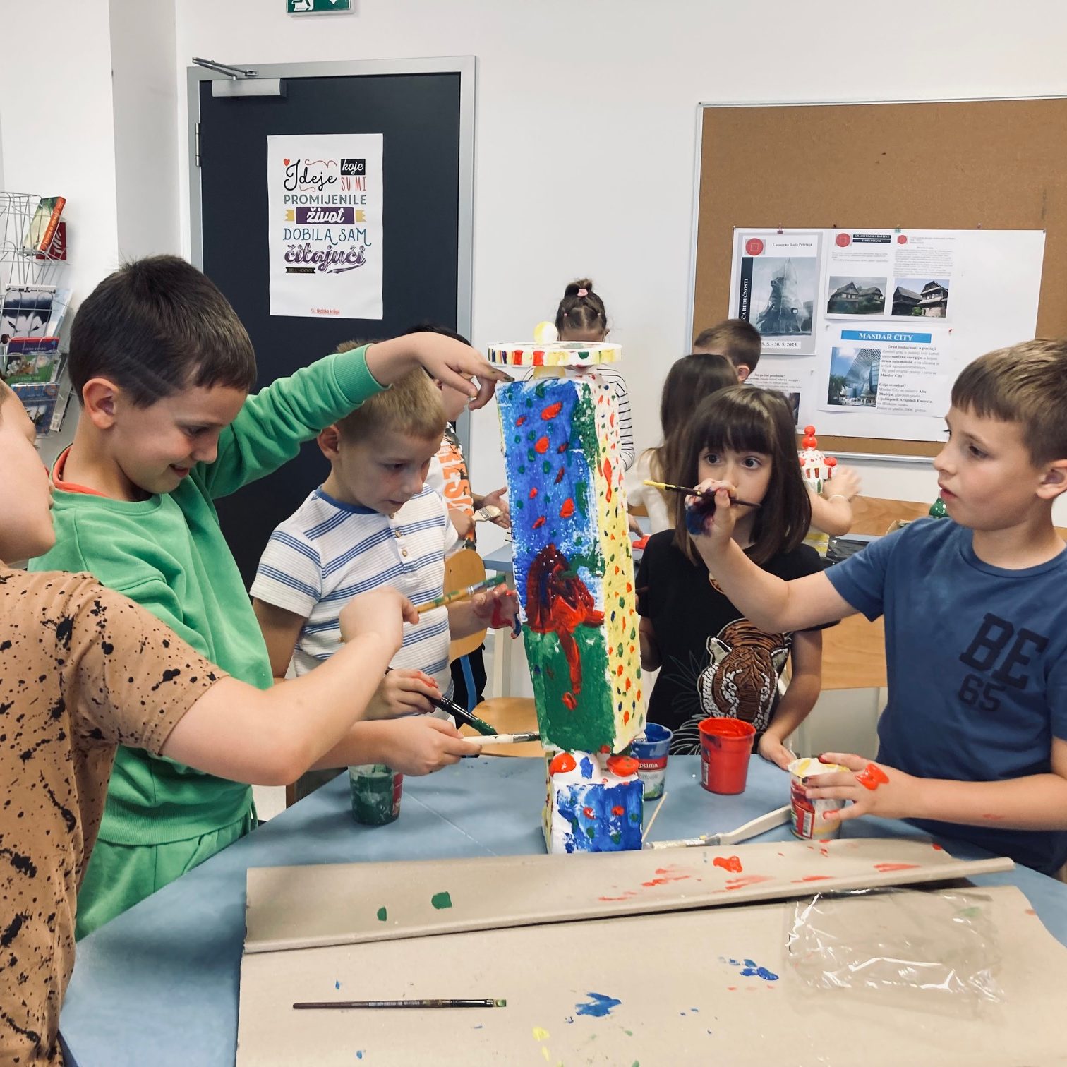 Djeca su istraživala kako oblikovati prostor prema visini, razmišljala o stabilnosti i pokazala da mašta nema granica kad se gradi prema nebu.