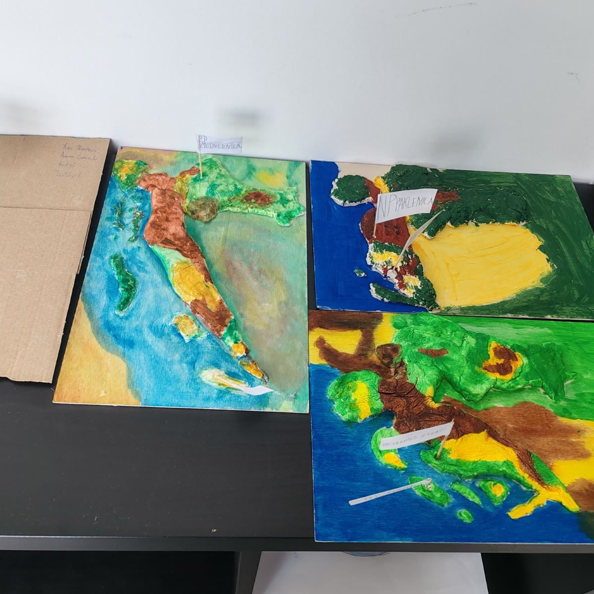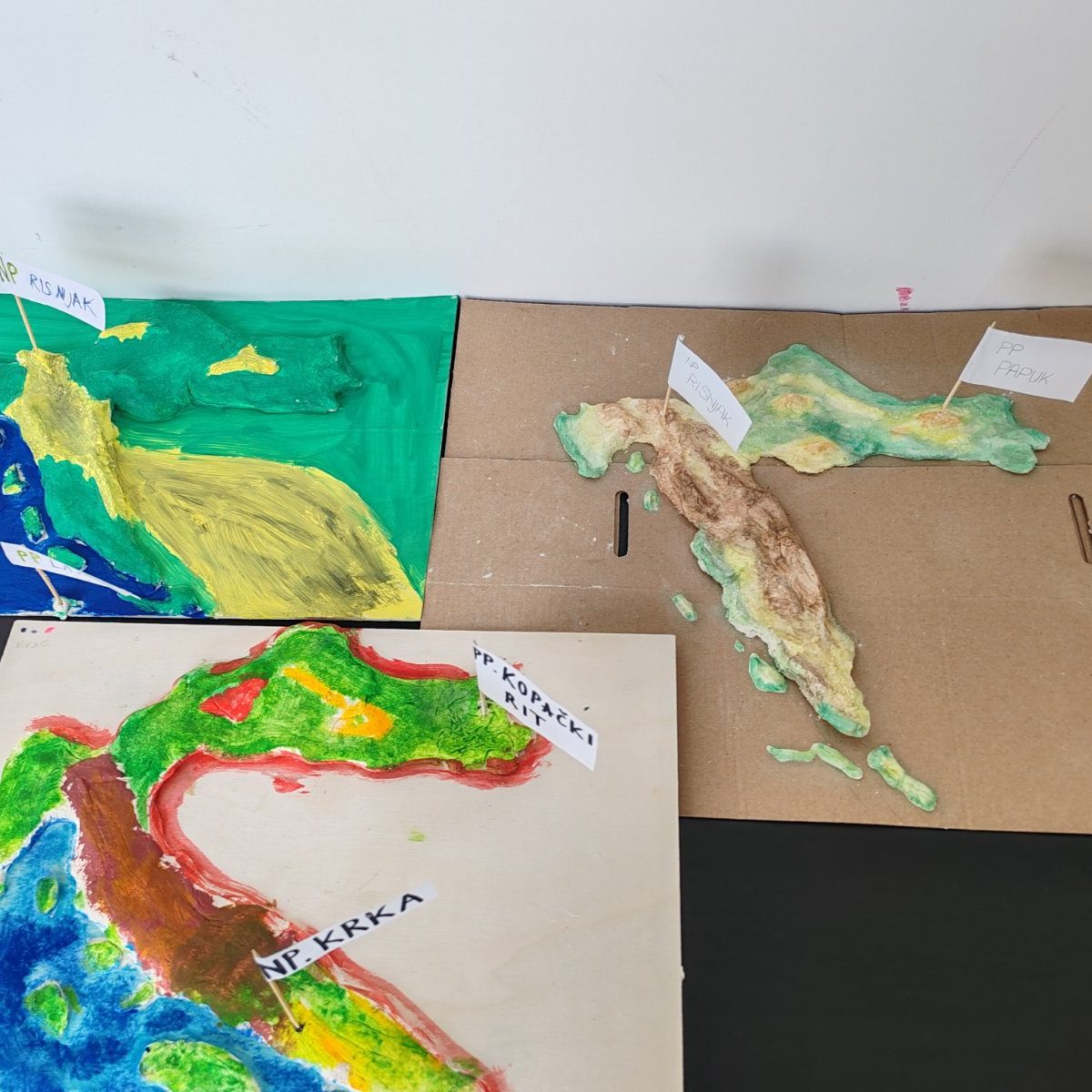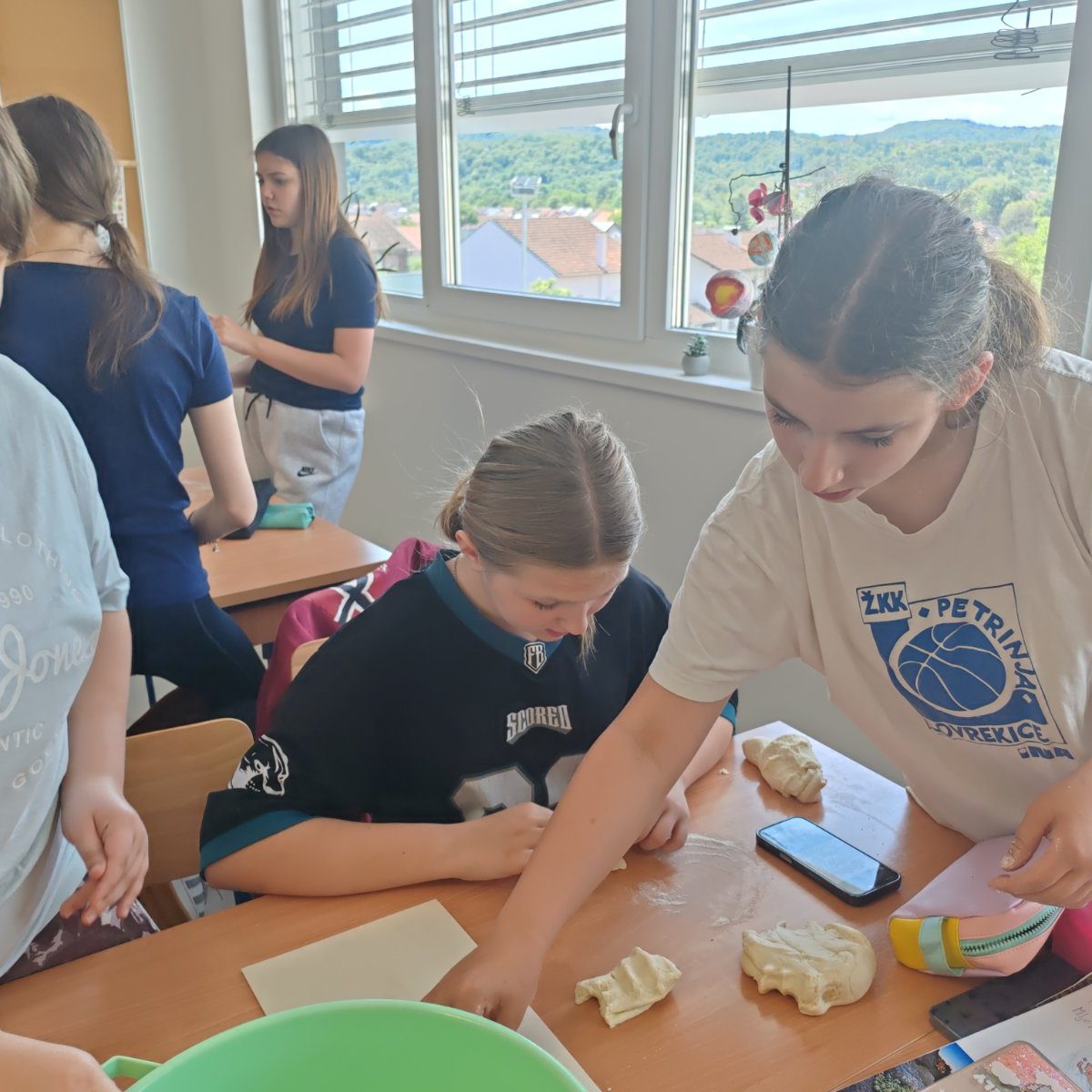 Učenici su bili i maleni slastičari te su umijesiti slano tijesto od kojeg su formirali reljefne karte Hrvatske, obojili ih te označili ona područja koja su prikazana u njihovim brošurama.