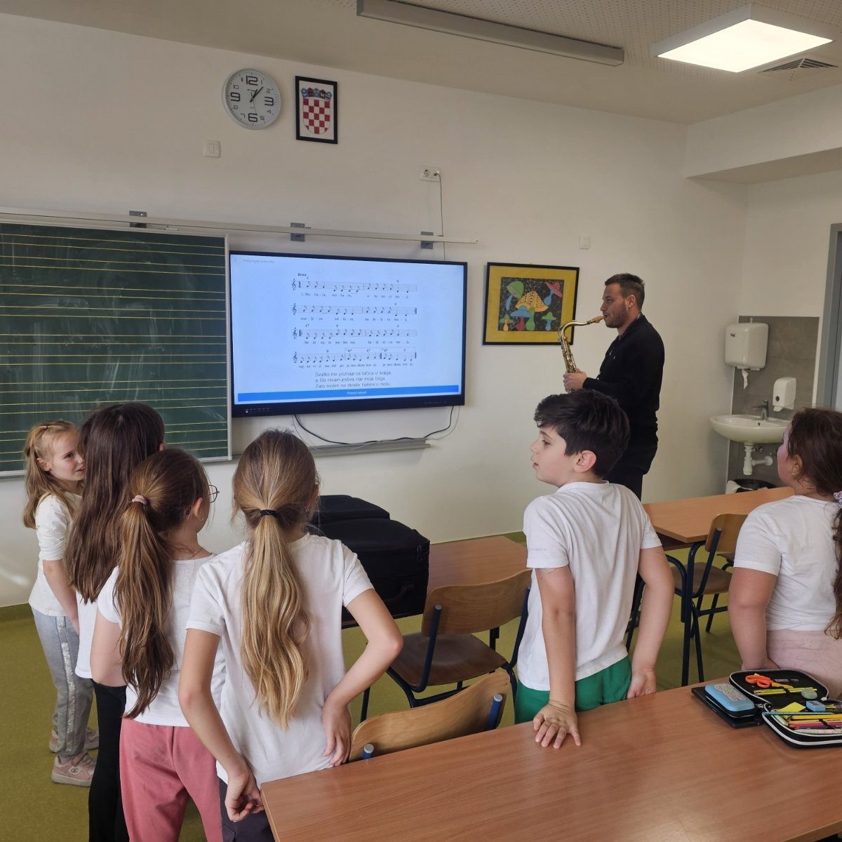 Učenici su saznali kakav je to instrument, kako se svira i od čega se sastoji. Čuli su i raspon tonova saksofona, u kakvim sve sastavima, orkestrima se on može uklopiti i svirati te na kraju zapjevali uz saksofon pjesme s Glazbene kulture.