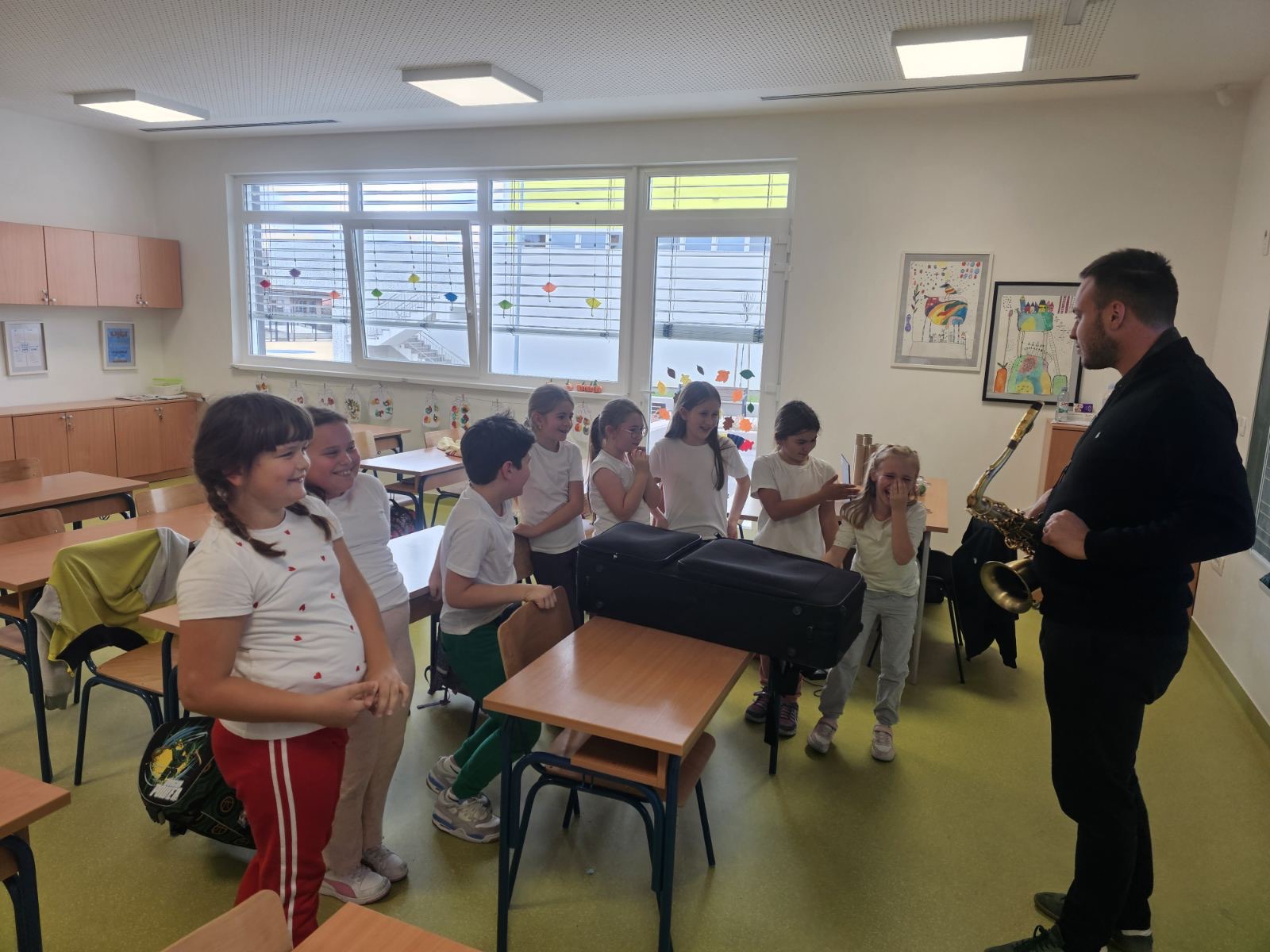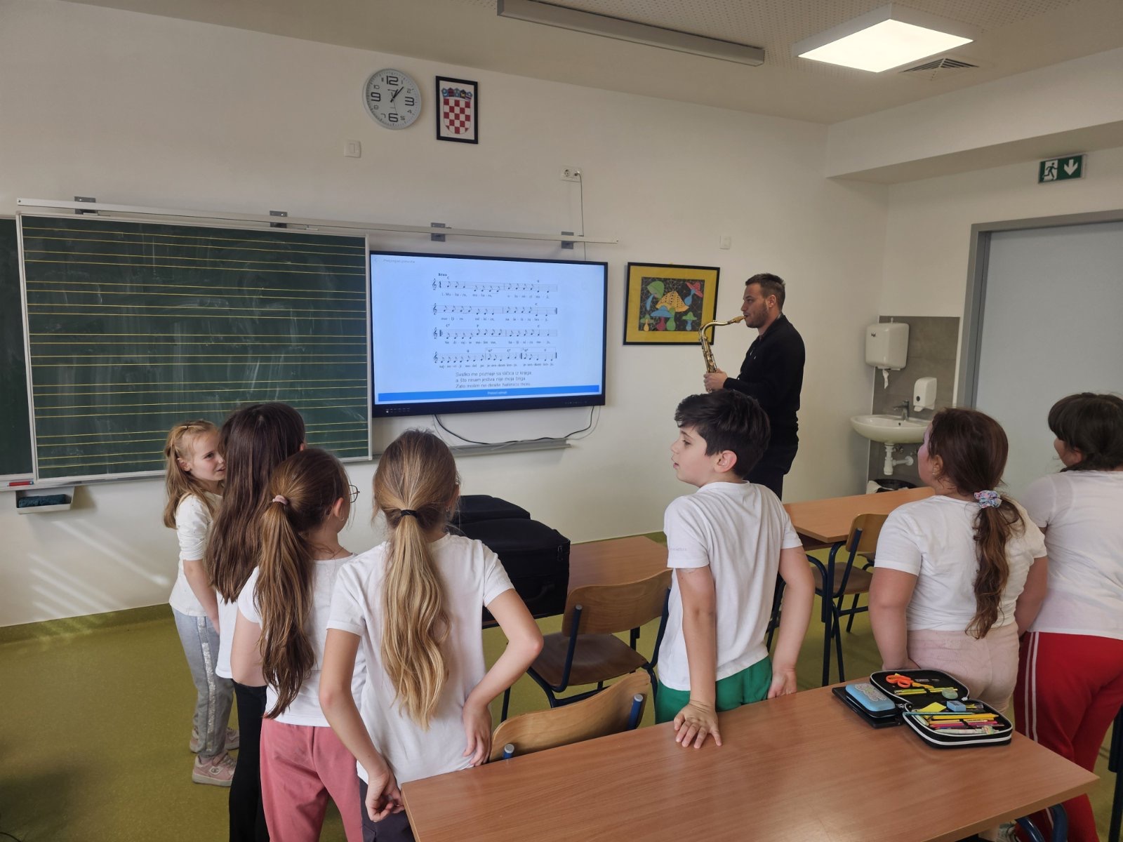 Učenici su saznali kakav je to instrument, kako se svira i od čega se sastoji. Čuli su i raspon tonova saksofona, u kakvim sve sastavima, orkestrima se on može uklopiti i svirati te na kraju zapjevali uz saksofon pjesme s Glazbene kulture.