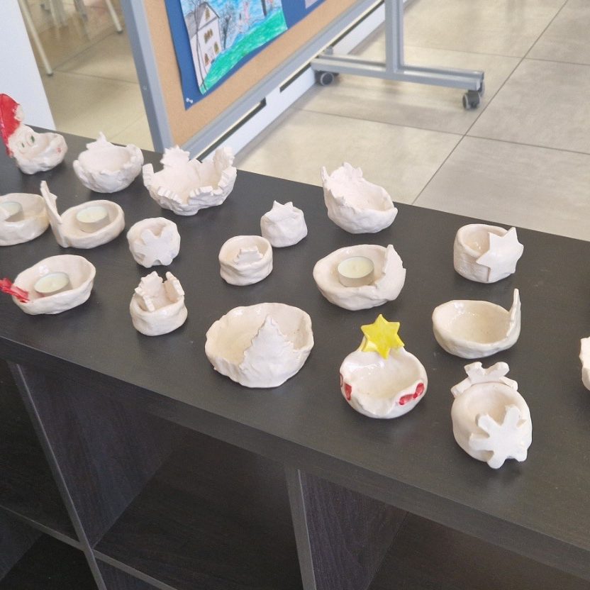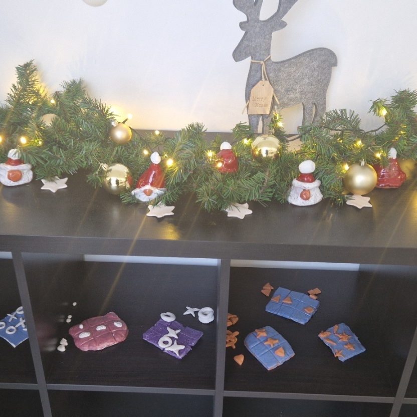 Izrađivali su pločice i figurice za igru križić-kružić, ukrase za božićno drvce, svijećnjake, božićne kapice i patuljke. Uložili su puno truda i rada i stvorili prava mala umjetnička djela.