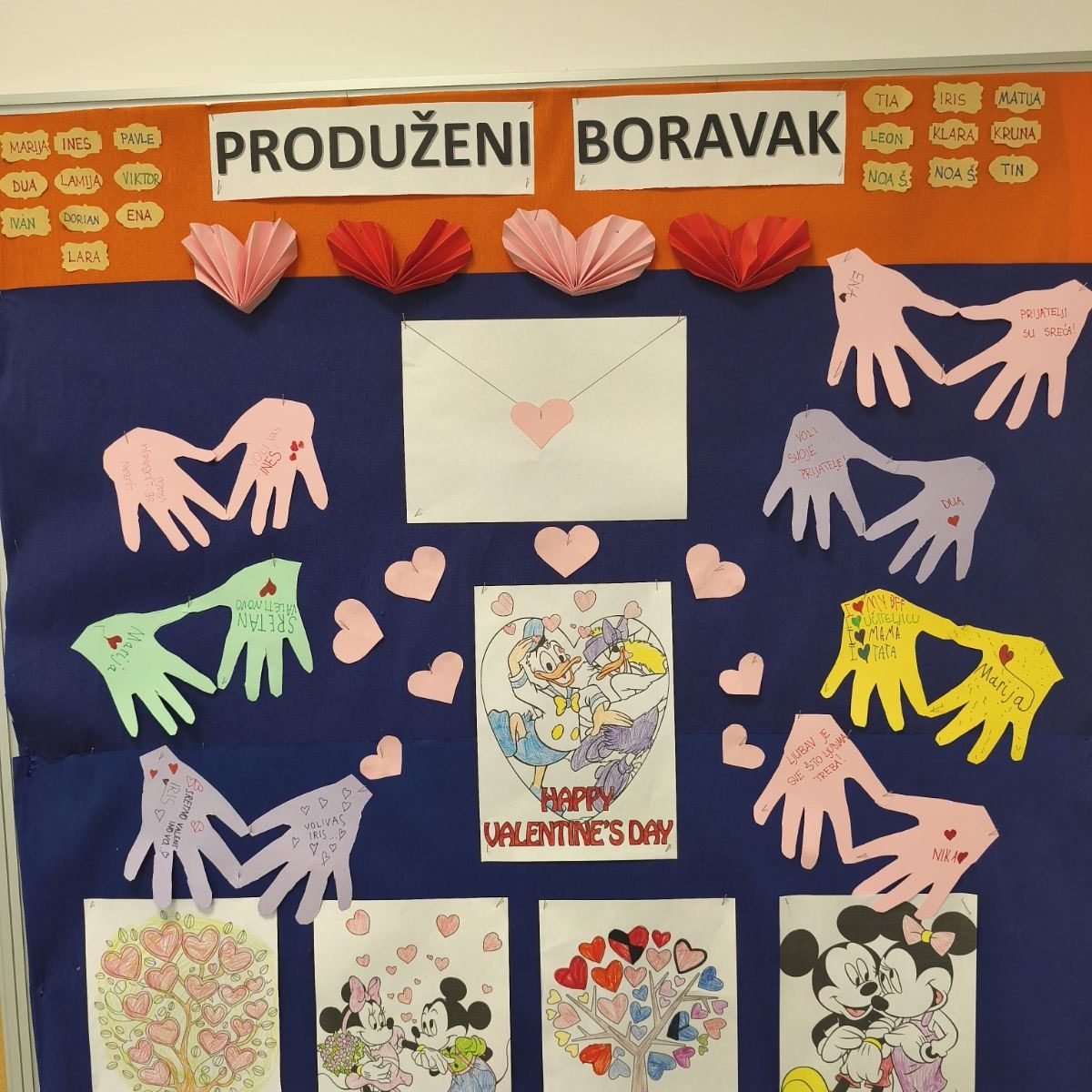 Povodom Valentinova školu su ispunila srca, tople poruke i simboli prijateljstva. Učenici su kroz likovne radove i prigodne ukrase pokazali koliko su pažnja, lijepa riječ i međusobno poštovanje važni u svakodnevnom životu. Posebno nas veseli što su radovi odražavali kreativnost, trud i iskrene emocije naših učenika.
