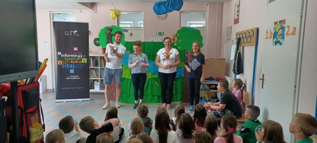 Prošloga tjedna, u četvrtak 19. svibnja, naše su prvašiće u Hrastovici posjetili knjižničari iz Gradske knjižnice i čitaonice Petrinja. Izveli su lutkarsku predstavu Tri medvjeda i gitara (prema istoimenoj slikovnici Ljudevita Bauera) koju su sami osmislili s ciljem da, u suradnji s učiteljima, svim prvašićima u Petrinji ponude i održe ovaj neobičan i drugačiji sat…
