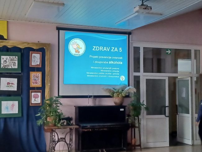 Danas je za učenike 8. razreda održano predavanje o prevenciji ovisnosti o alkoholu. Predavanje se svake godine održava u sklopu projekta “Zdrav za 5” koji je dio našeg školskog preventivnog programa. Zahvaljujemo predavaču Ravnateljstva policije gosp. Slavku Jergoviću.